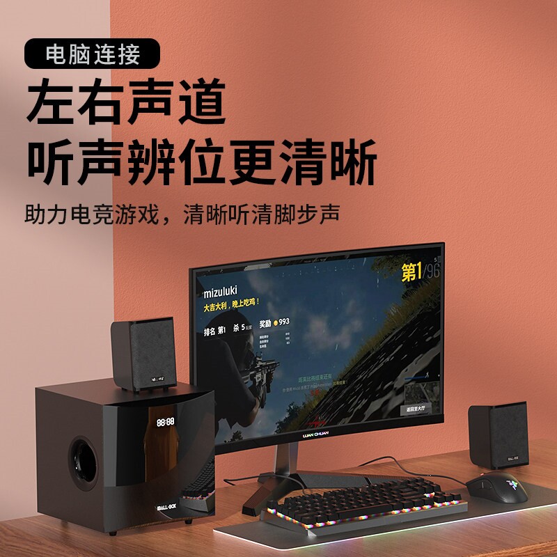 艾鲁铂格电脑音响无线蓝牙台式家多媒体音箱低音炮用有线桌面有源