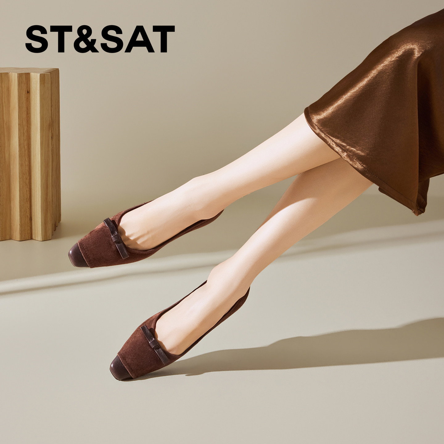 星期六复古风浅口单鞋女2026春季新款真皮坡跟小个子内增高工作鞋