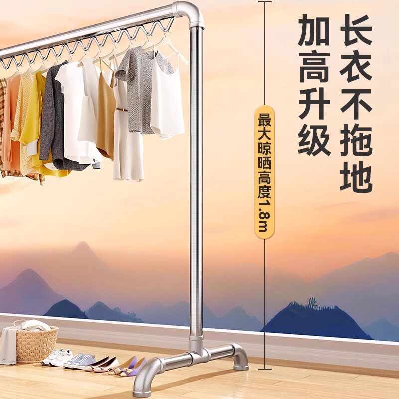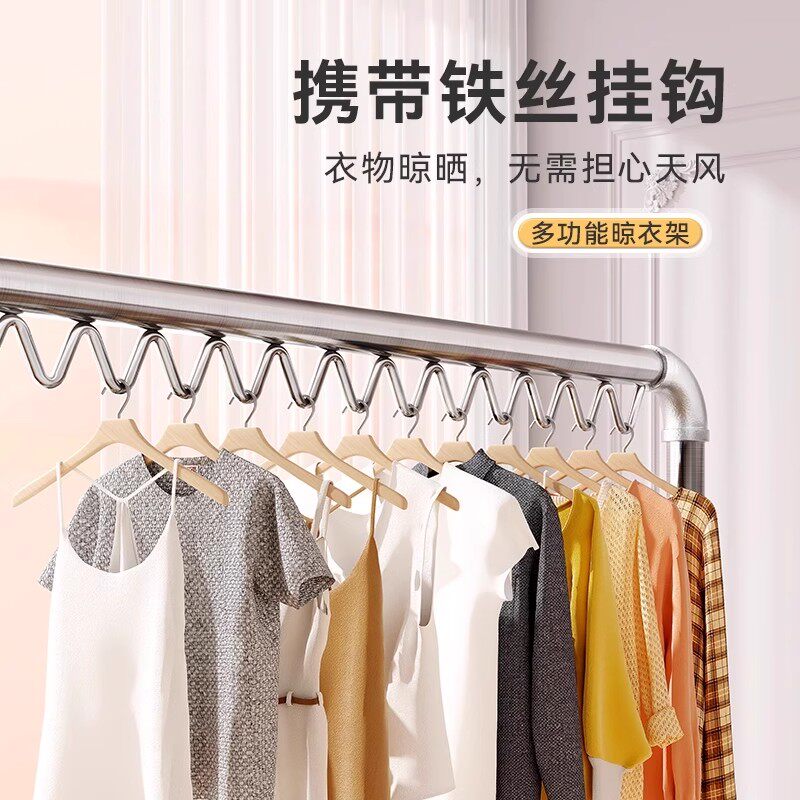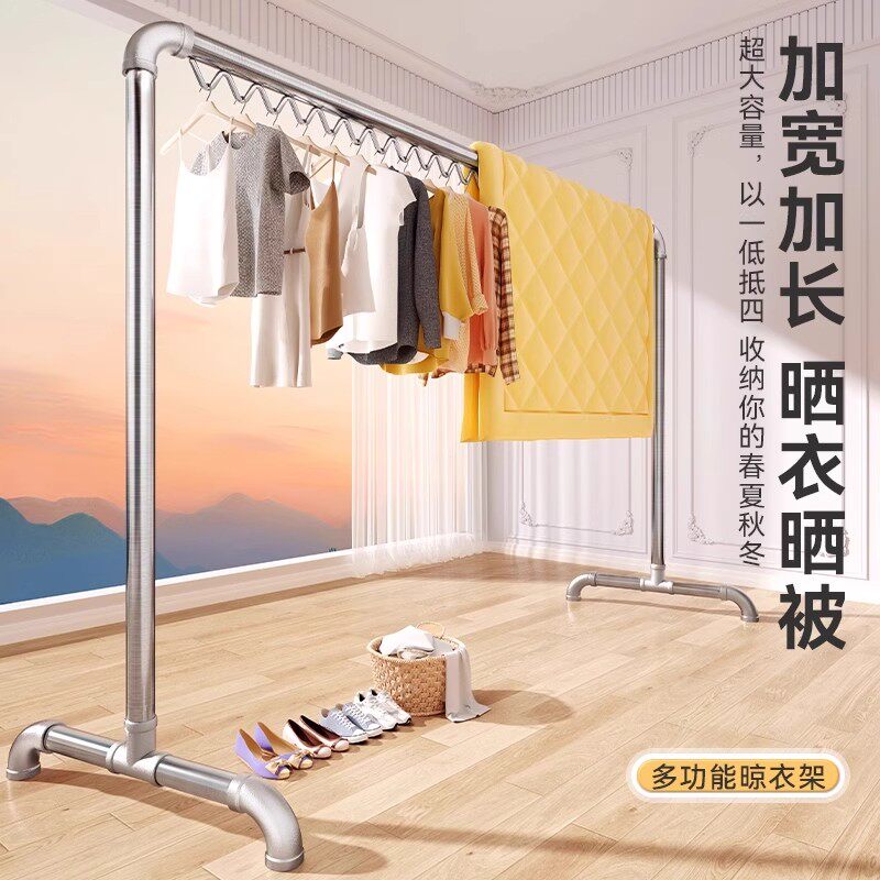 不锈钢晾衣架可折叠多功能落地室内家用阳台好晒衣服被子简易晾杆