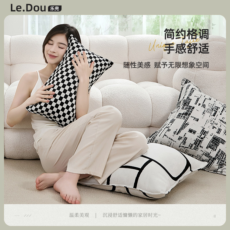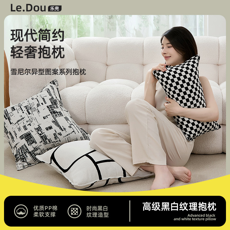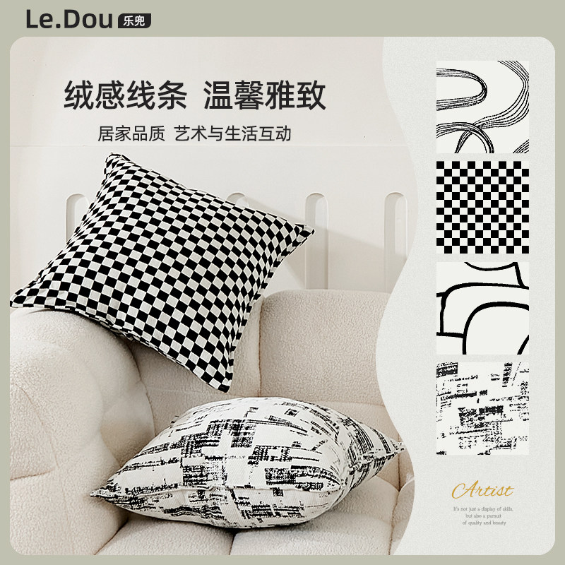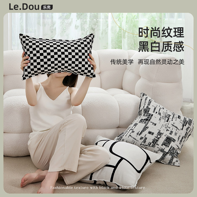 抱枕沙发客厅法式中古风靠枕高级感腰枕雪尼尔提花靠垫床头黑白