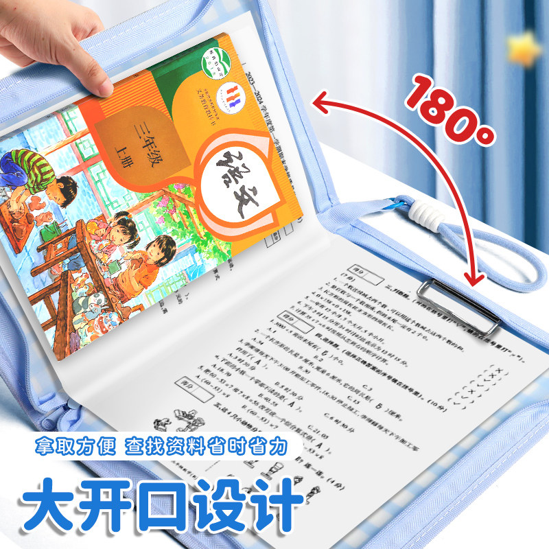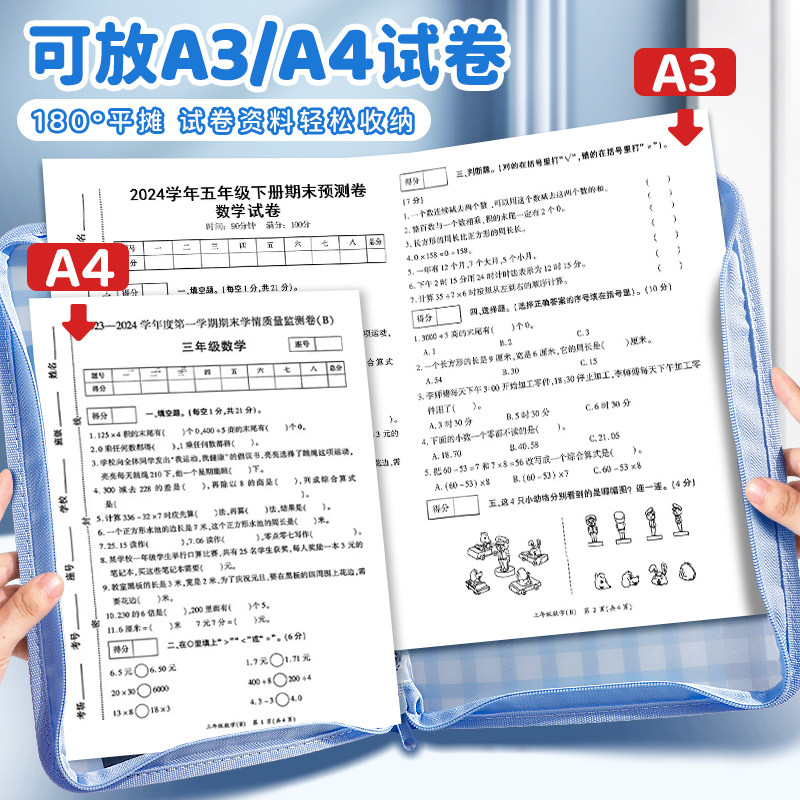 A3文件袋L型拉链式高颜值透明手提袋学生拎书袋A4资料孕检收纳袋考试专用袋子中小学生可装书本补习补课包袋