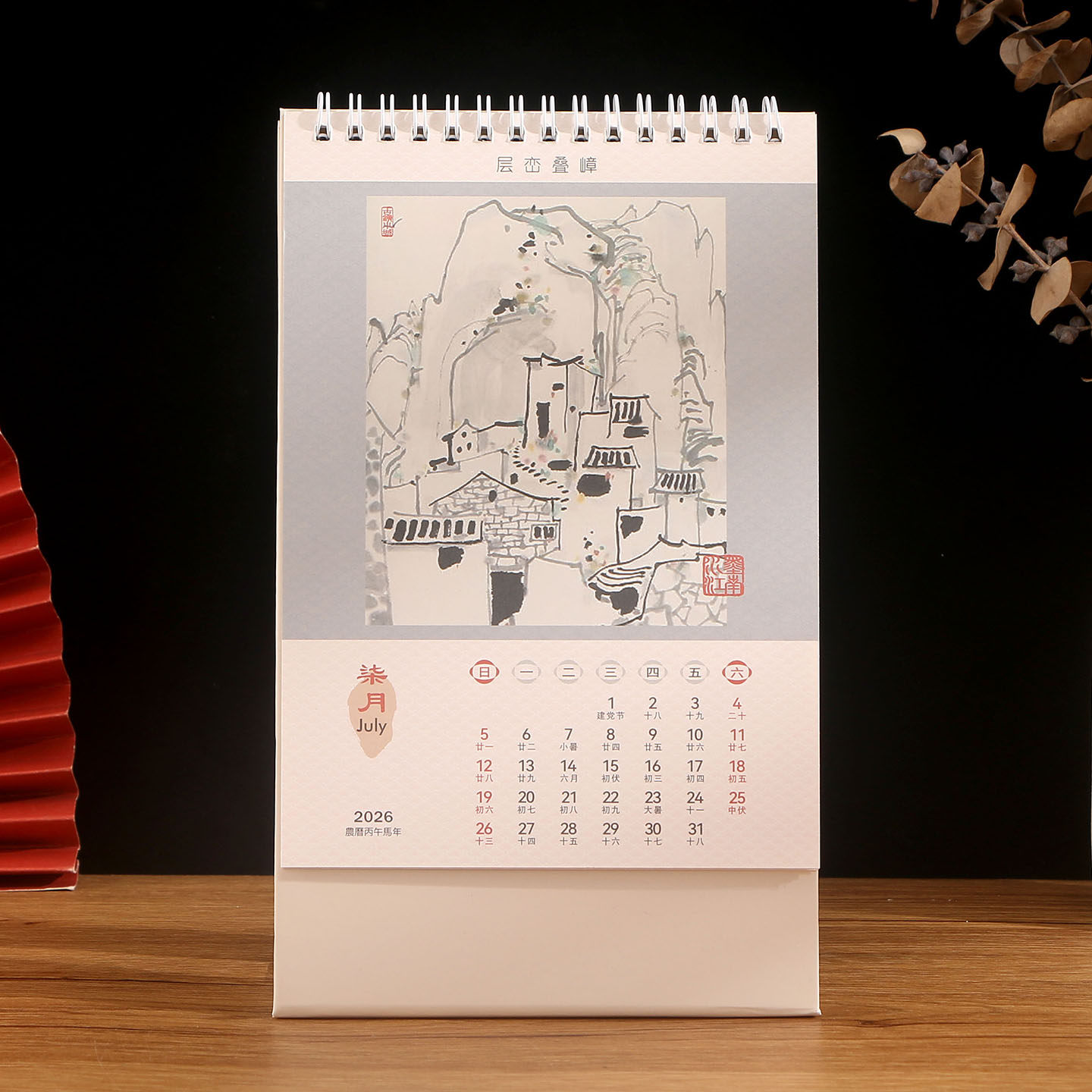 台历2026年新款日历定制logo创意简约小清新韩式办公年历个性中国风桌面摆件商务工作记事计划本订制广告月历