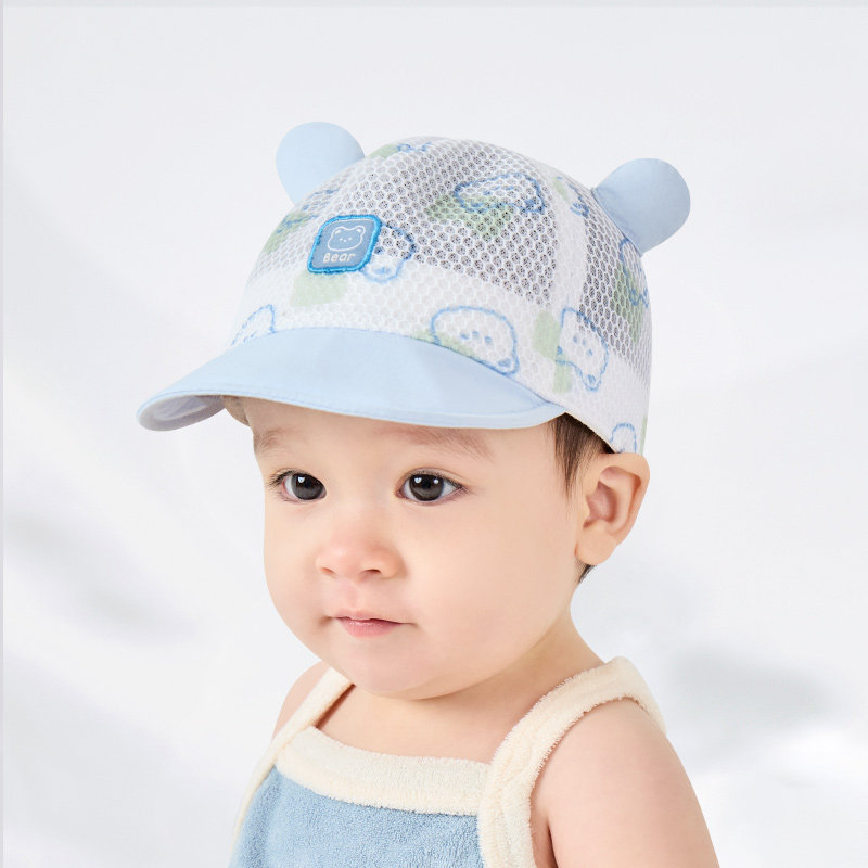 婴儿帽子夏季薄款男宝宝防晒鸭舌帽新生儿夏天小月龄遮阳帽儿童网