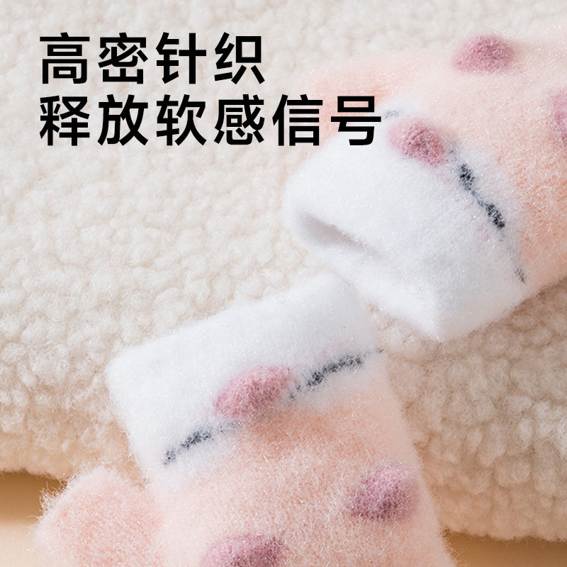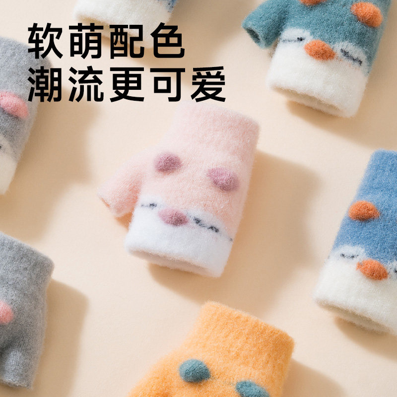 mikko联名可爱卡通猫咪毛绒手套女冬季翻盖半指触屏加厚骑行保暖