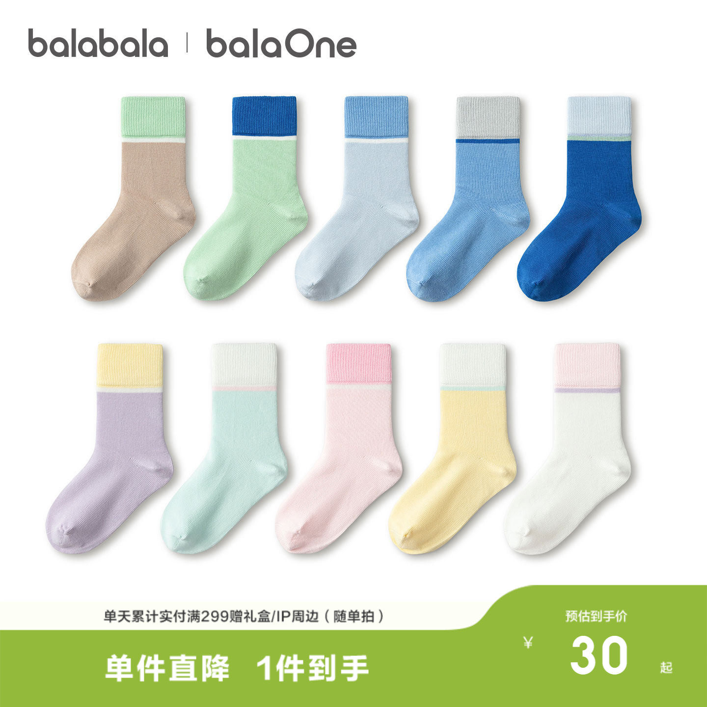 巴拉巴拉儿童袜子春秋季男女童棉袜中筒袜纯色舒适小童中五双装潮