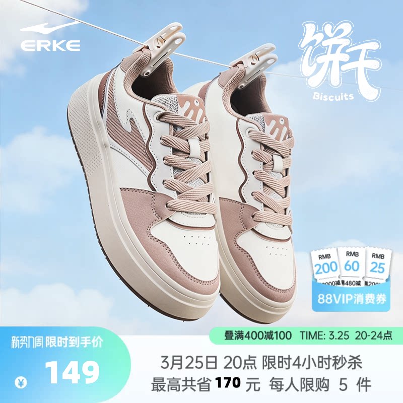 饼干鸿星尔克女鞋板鞋夏季新款鞋子女款运动鞋透气厚底增高休闲鞋