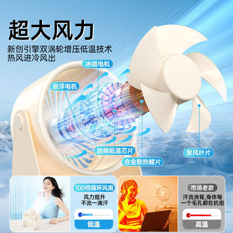 循环制冷】桌面小风扇电风扇家用静音小型办公室2026新款usb充电续航学生宿舍夹式制冷卧室降温神器超长续航