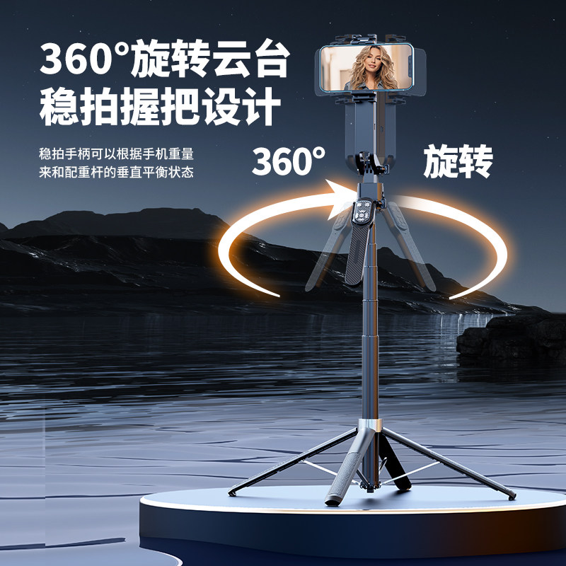 叠品A21P防抖2026新款多功能自拍杆360度全景旋转抖音蓝牙靓点加长落地直播三脚架便携手机旅游拍照专用神器