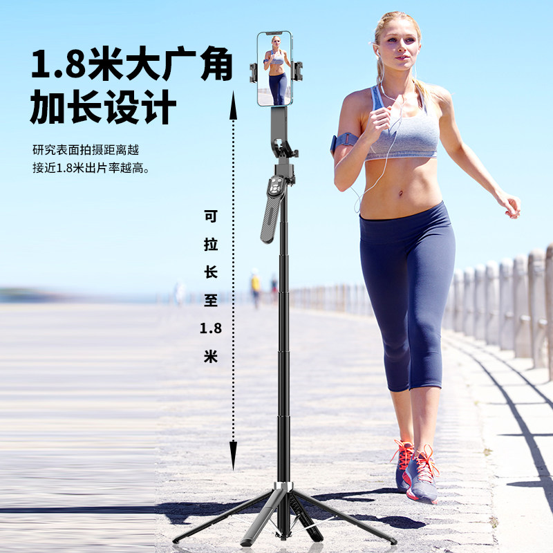 佑粒新款1.8m自拍杆防抖落地三脚架手机相机通用旅游便携手持伸缩支架拍照摄影自拍神器蓝牙远程双机位