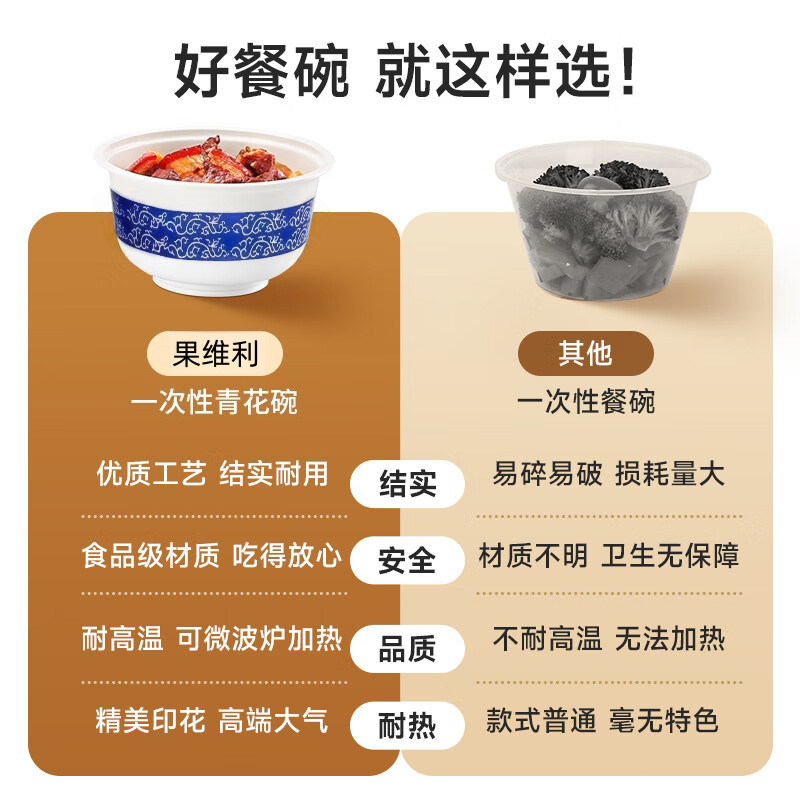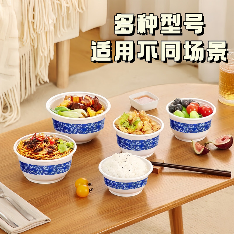 一次性塑料碗青花瓷碗中式硬型国潮风家用过年婚礼食品级餐具高温