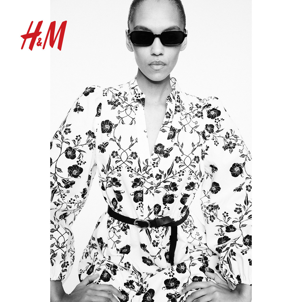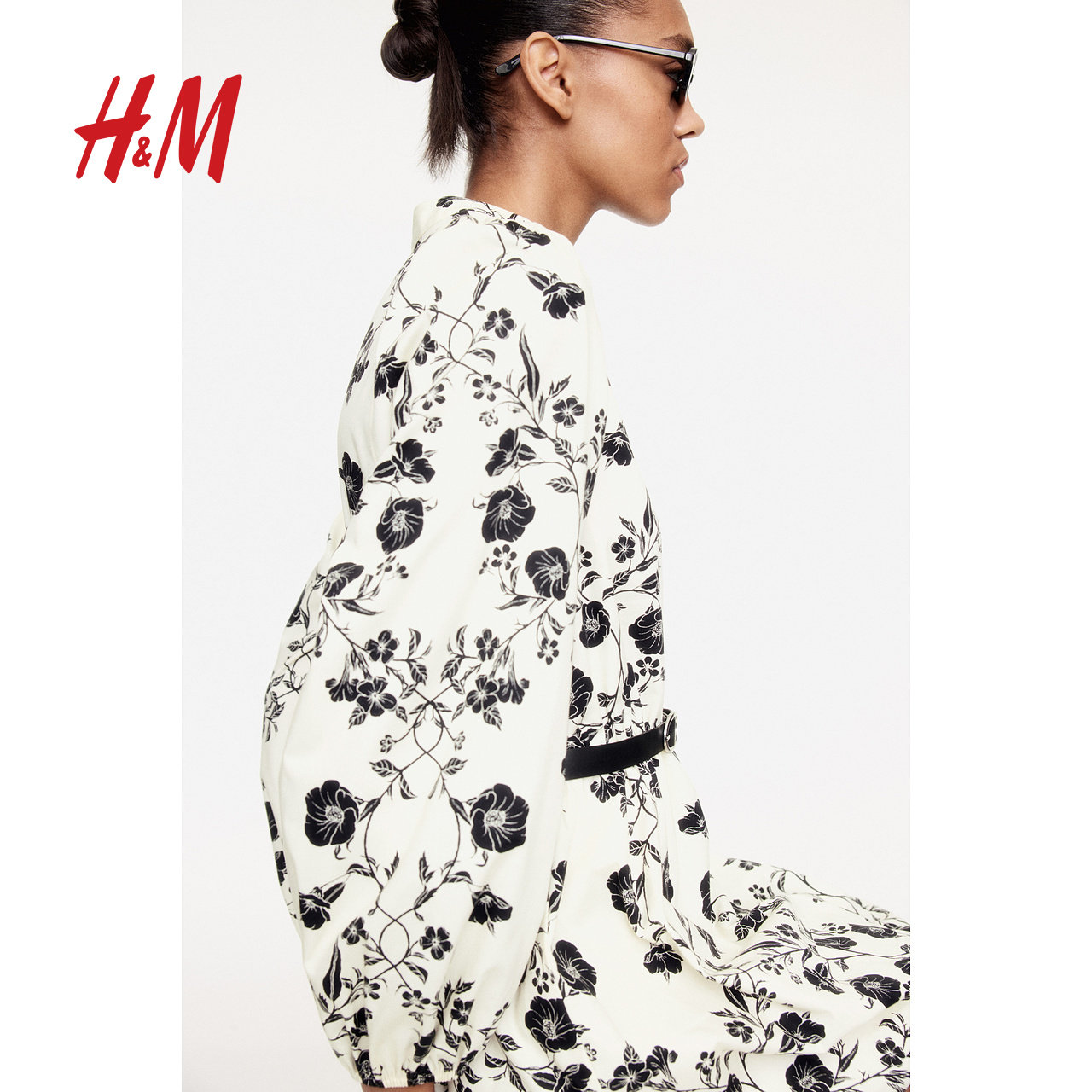 HM女装花卉连衣裙2025冬新款配腰带泡泡下摆设计感碎花裙1272211