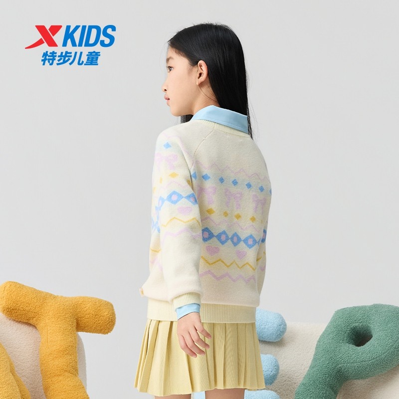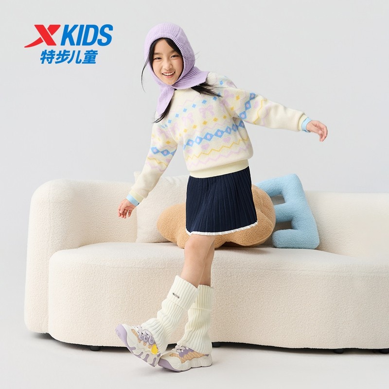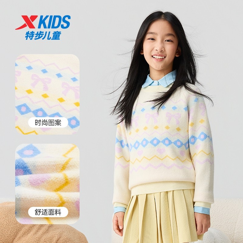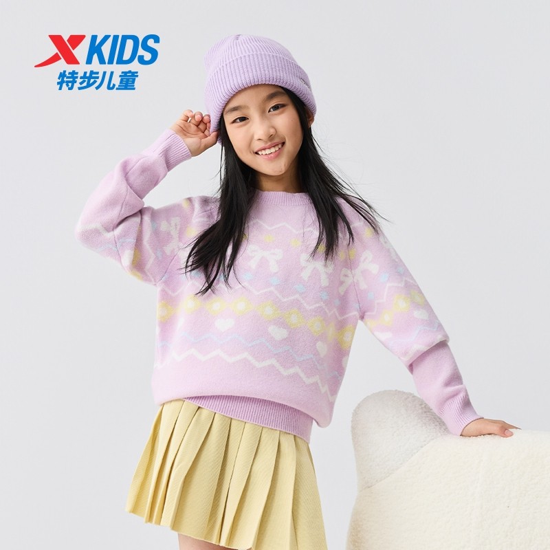 特步童装秋冬新款女童保暖休闲毛衫儿童运动亲肤软糯加厚针织毛衣