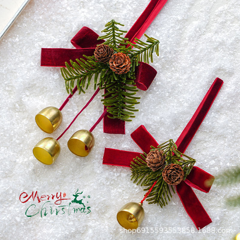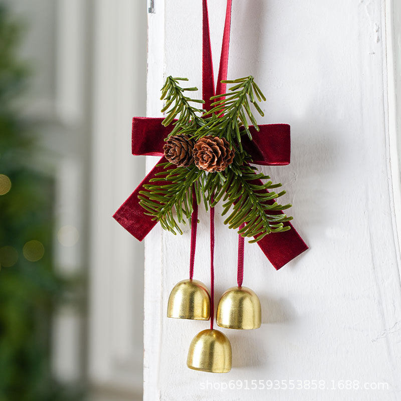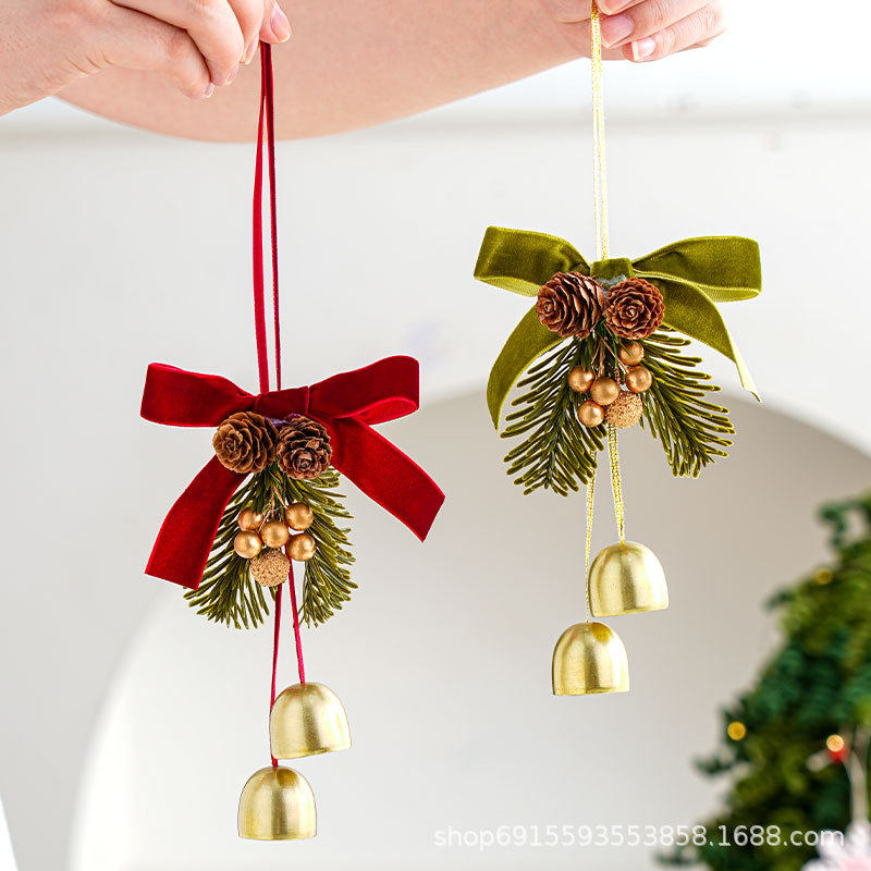新款圣诞节鹿角铃铛门摆件装饰品红蝴蝶结吊饰圣诞树创意布置挂件