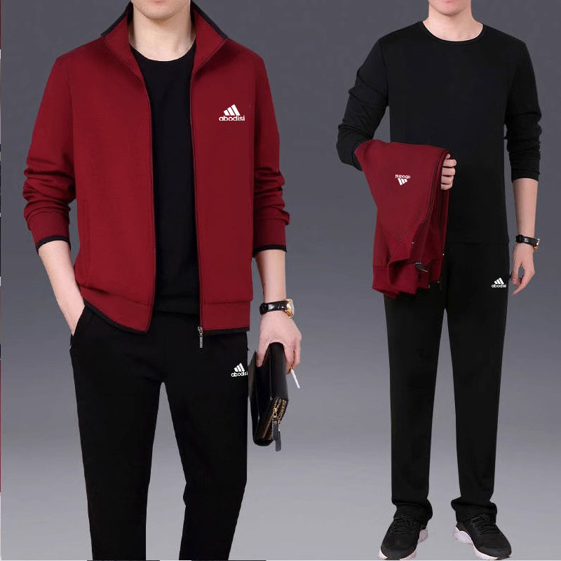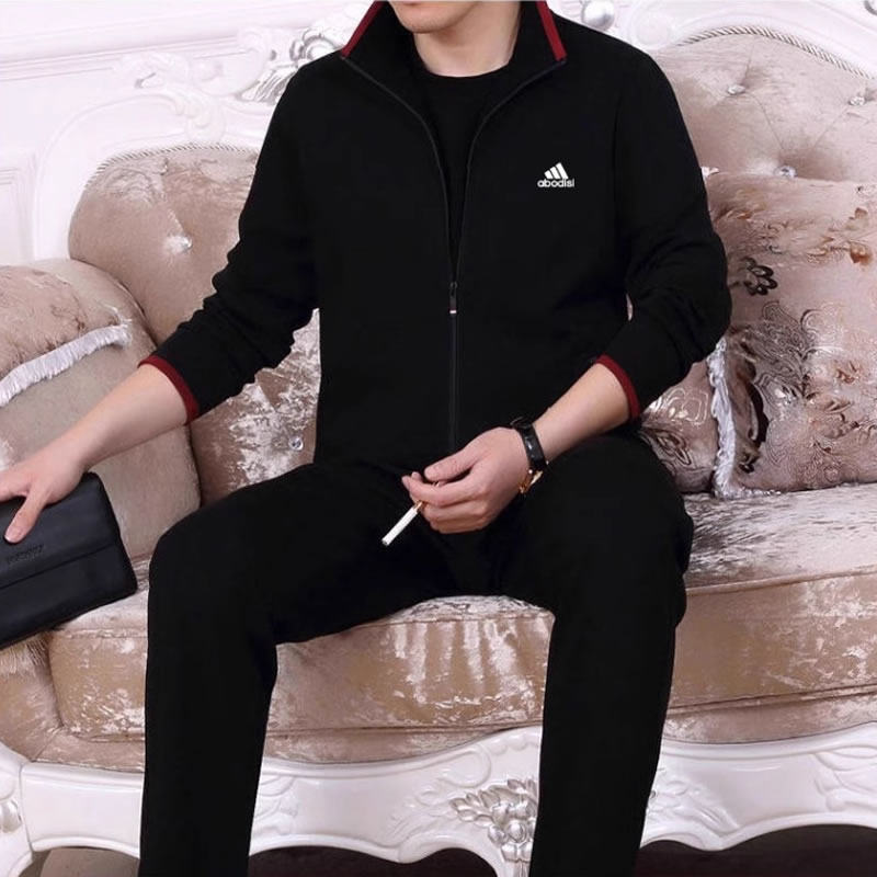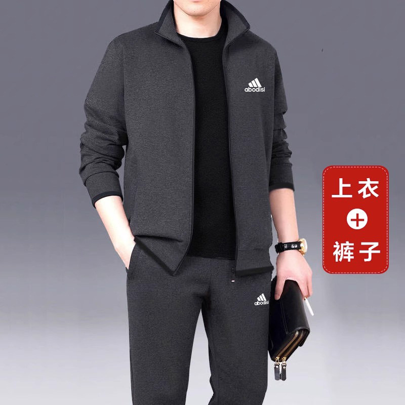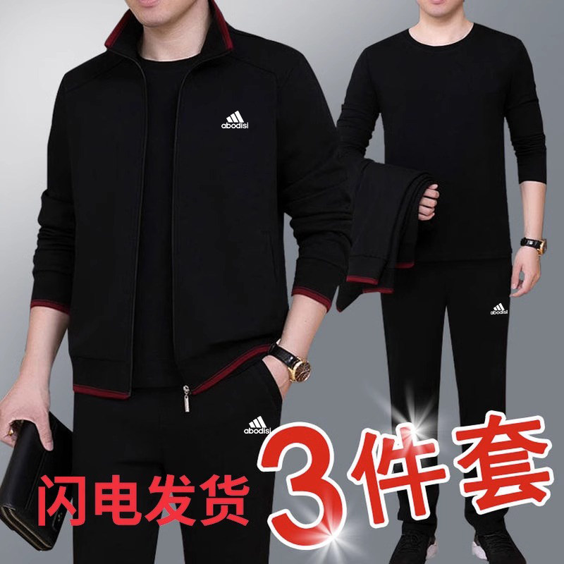 运动服套装男秋冬中老年纯棉宽松爸爸啊迪三叶草名牌三件套上衣