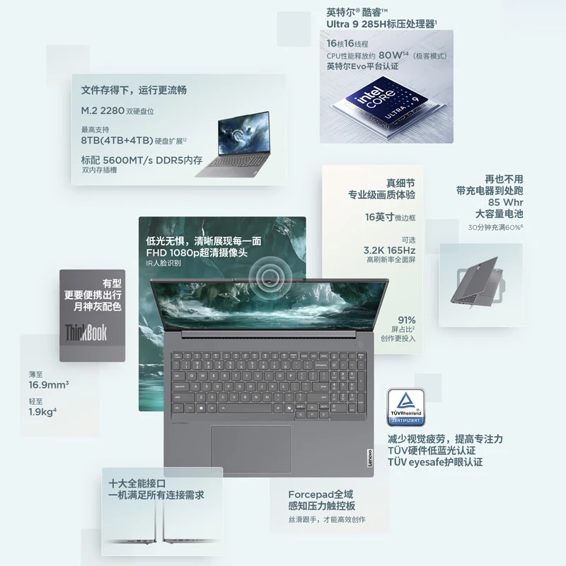 【国家补贴15%】联想ThinkPad ThinkBook 16+ 2025款16英寸大屏轻薄办公3.2K便携手提笔记本电脑大学生推荐款