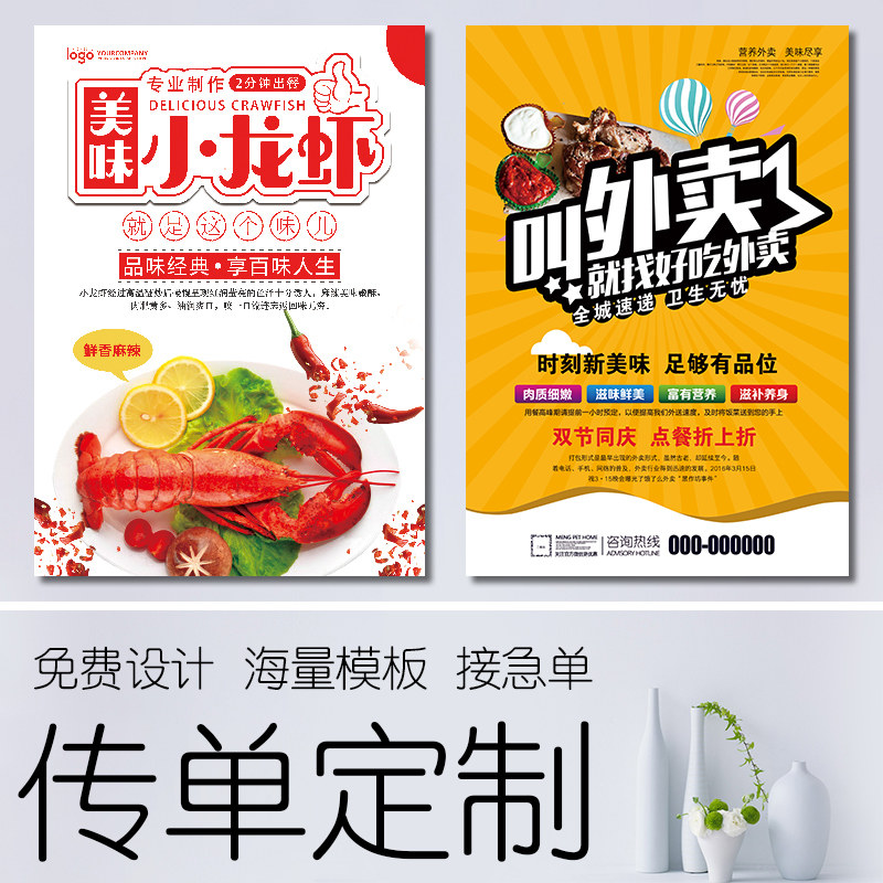 宣传单餐饮海报菜单免费设计定做定制作美食设外卖店定制卡片广告