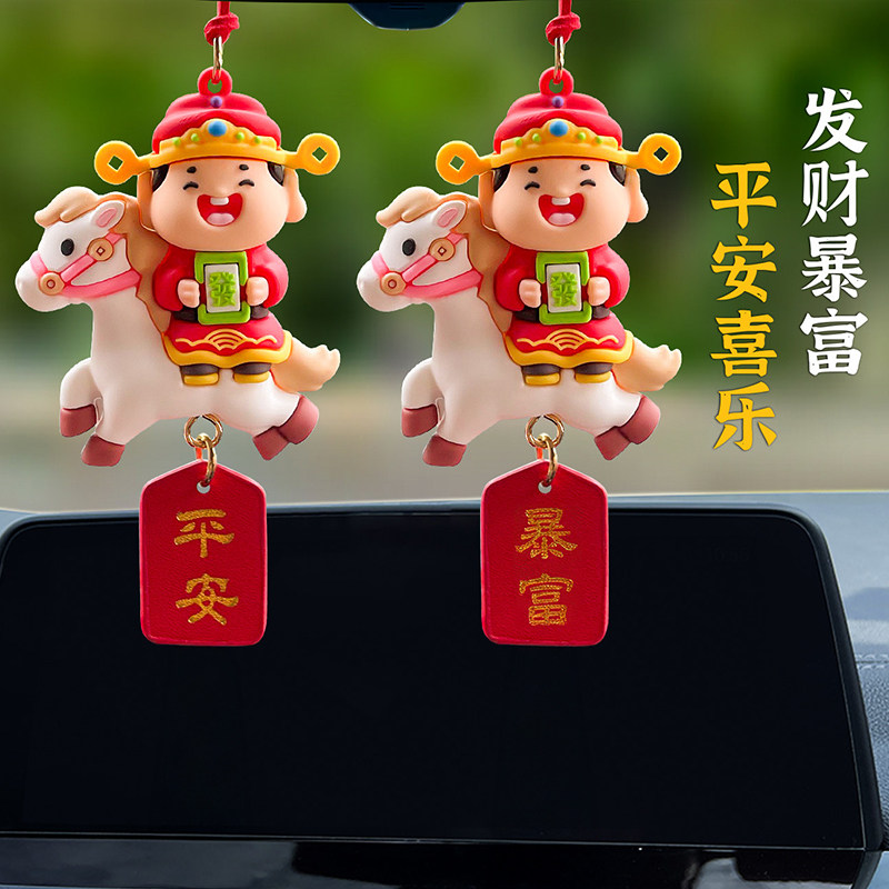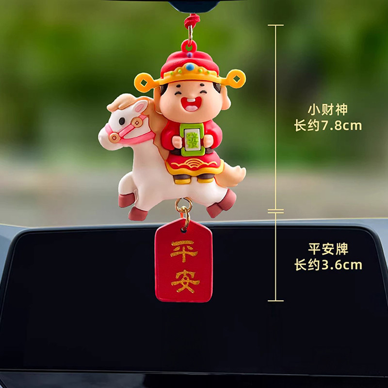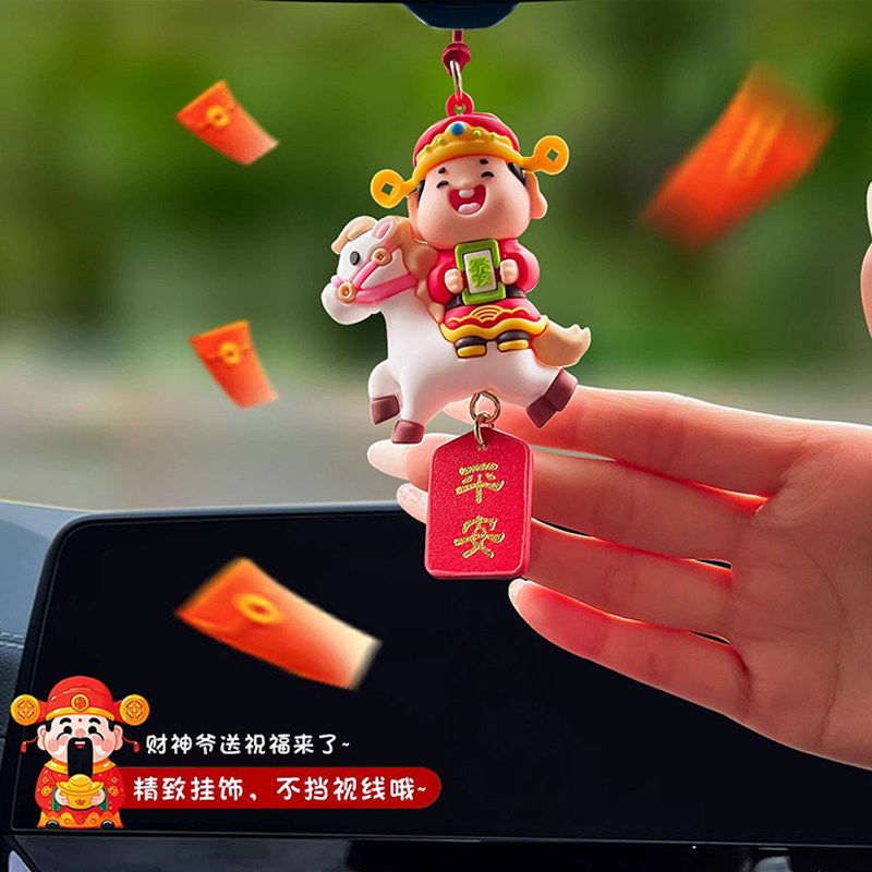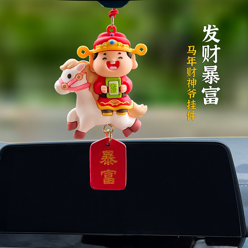 2026新款马年汽车挂件财神爷车内后视镜挂饰摆件公仔吉祥物装饰品