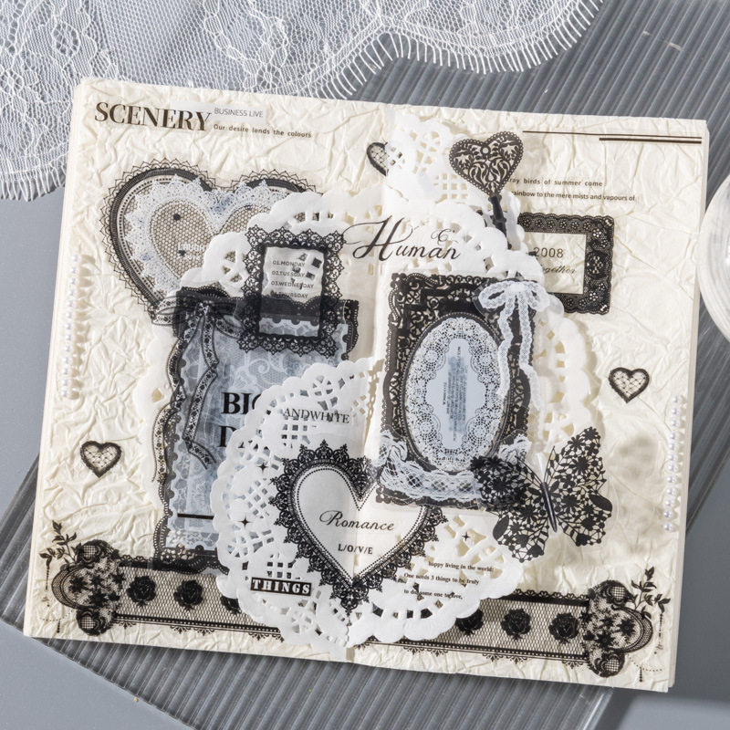 100张装贴纸包 蕾丝学院系列 复古花边手帐素材diy痛包装饰拼贴画