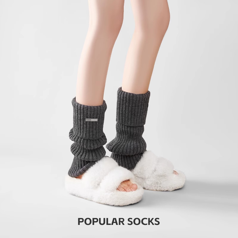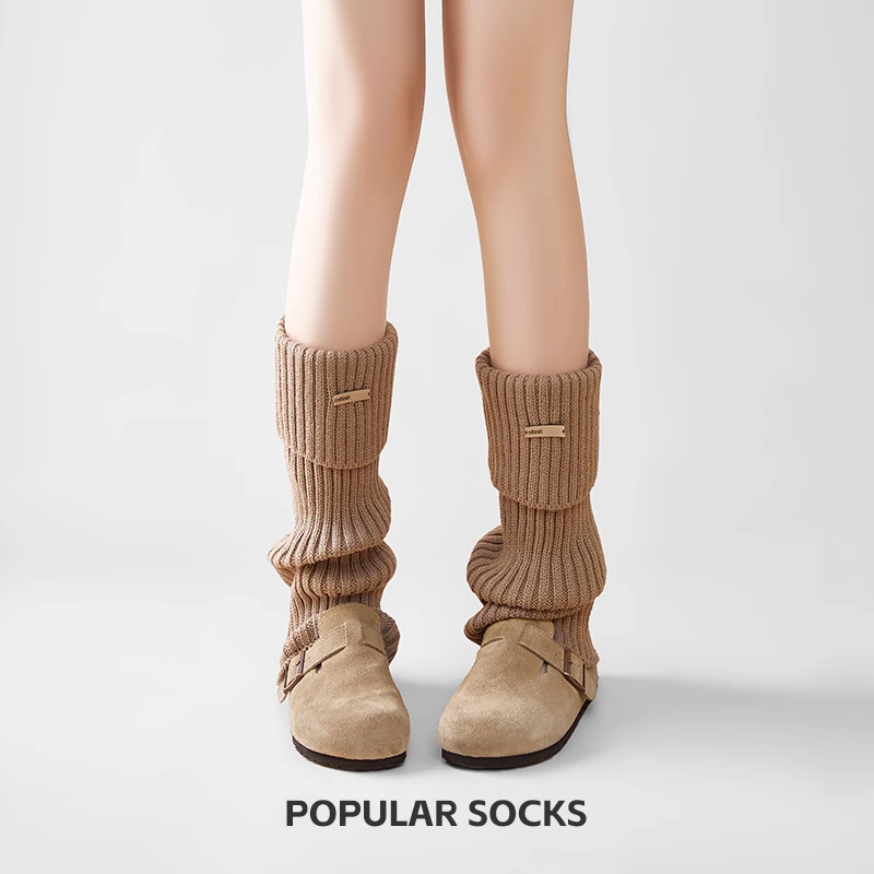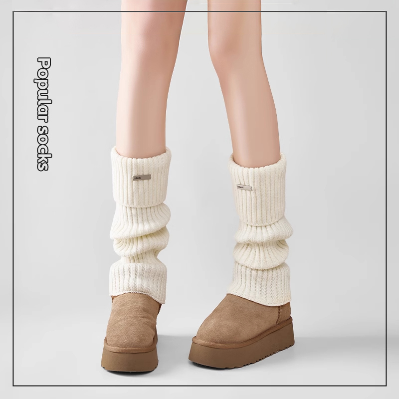 袜套女春秋雪地靴喇叭堆堆袜子女白色针织保暖腿套y2k千禧风中筒