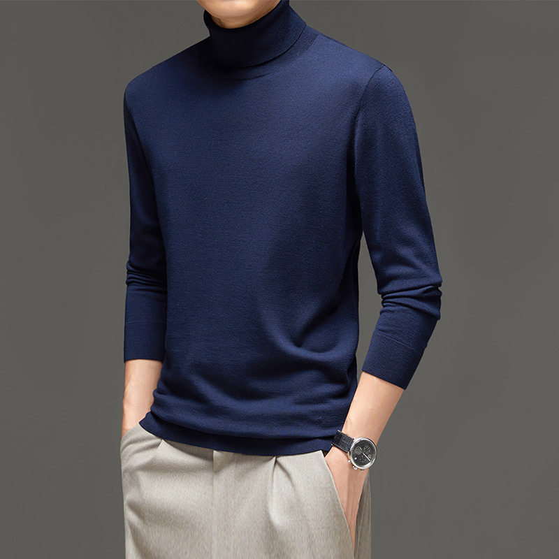 恒源祥品牌100%绵羊毛衫纯色男士毛衣高领薄款羊毛衫中青年打底衫