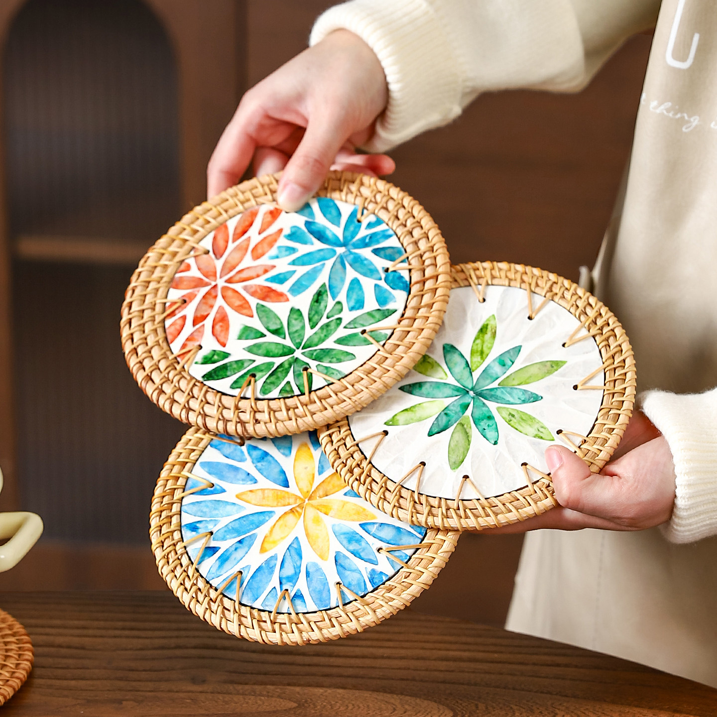 川岛屋贝壳隔热垫餐桌垫防烫耐高温茶杯垫砂锅垫藤编碗垫餐盘垫子