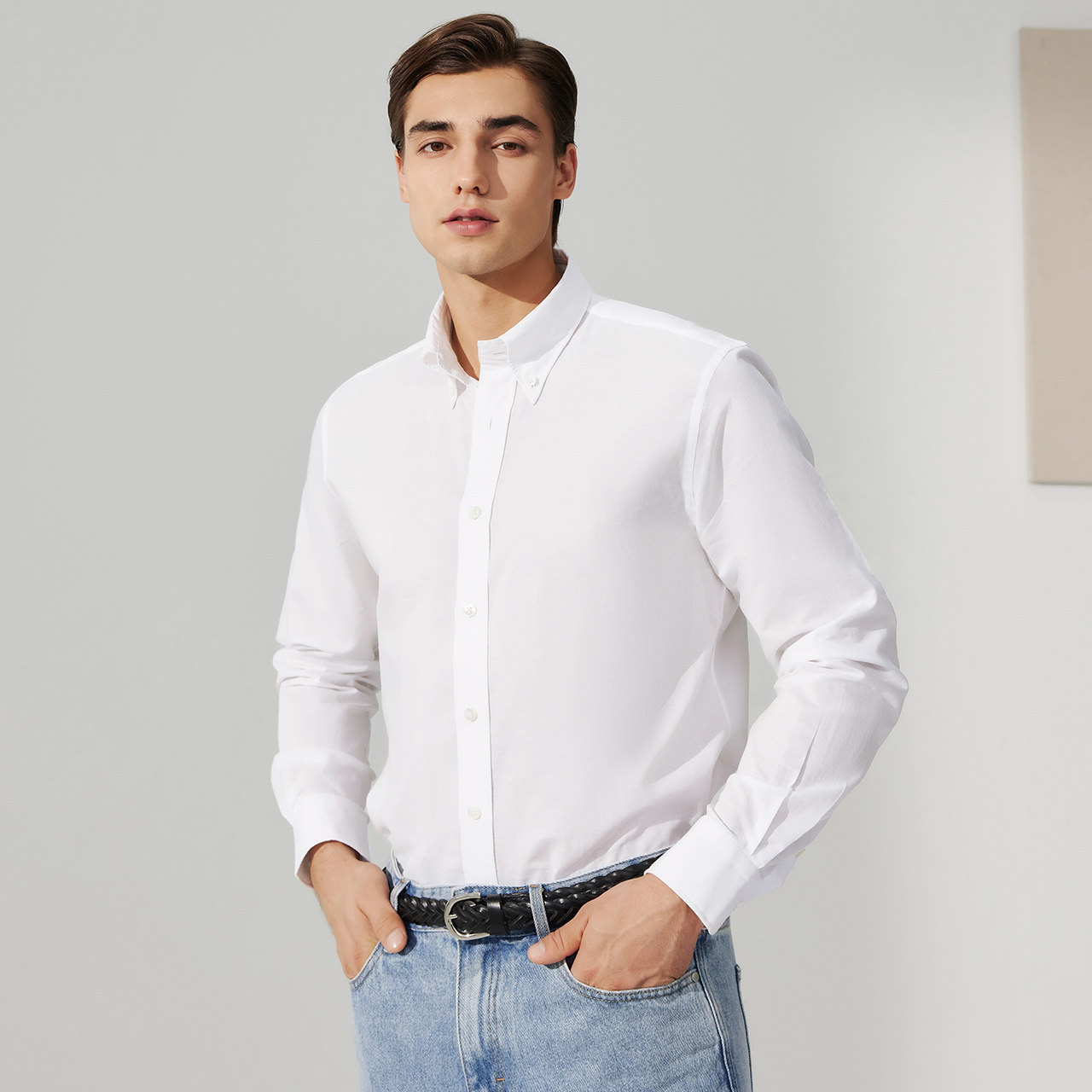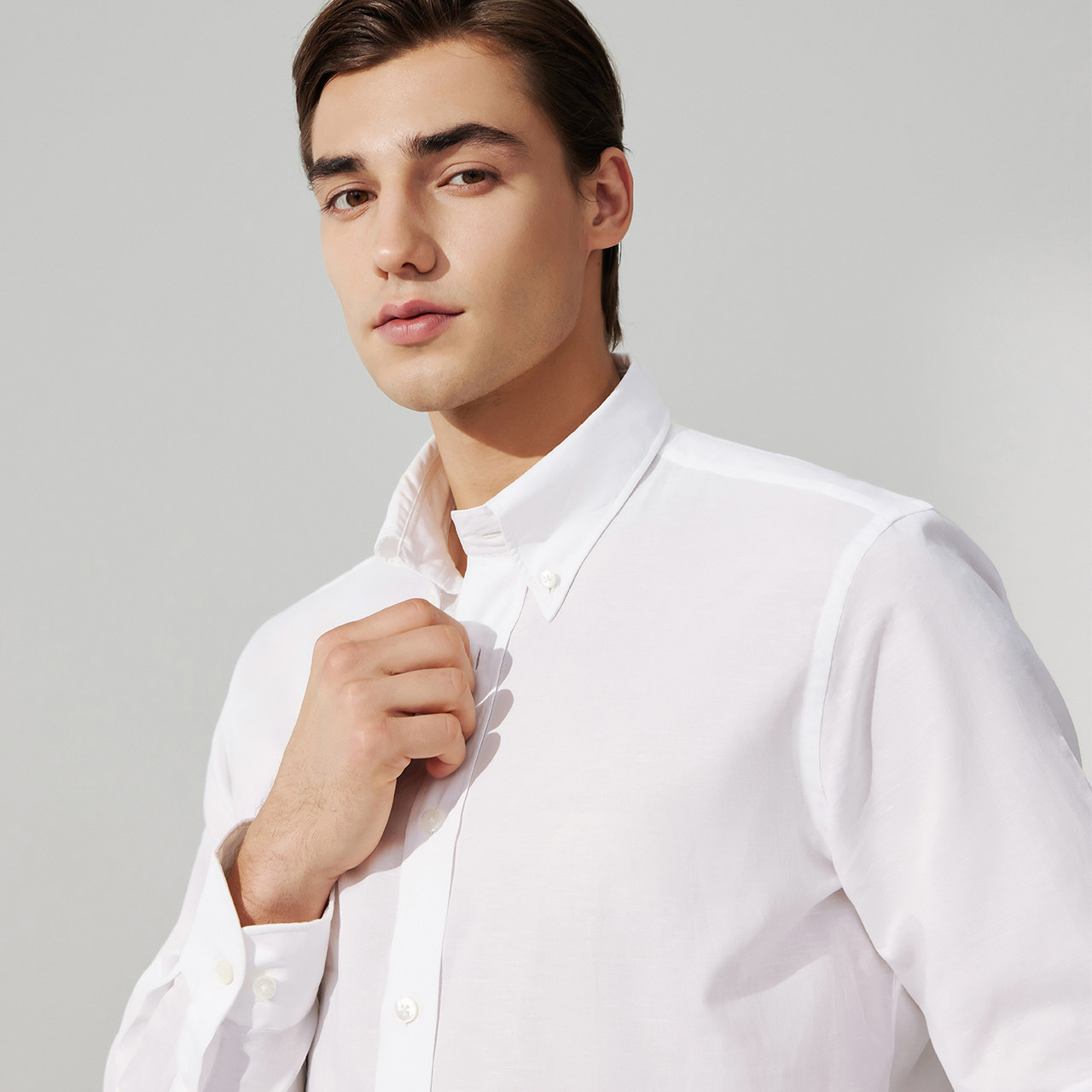 【意大利TESTA】棉亚麻纽扣领商务休闲衬衫男职业正装通勤长衬衣