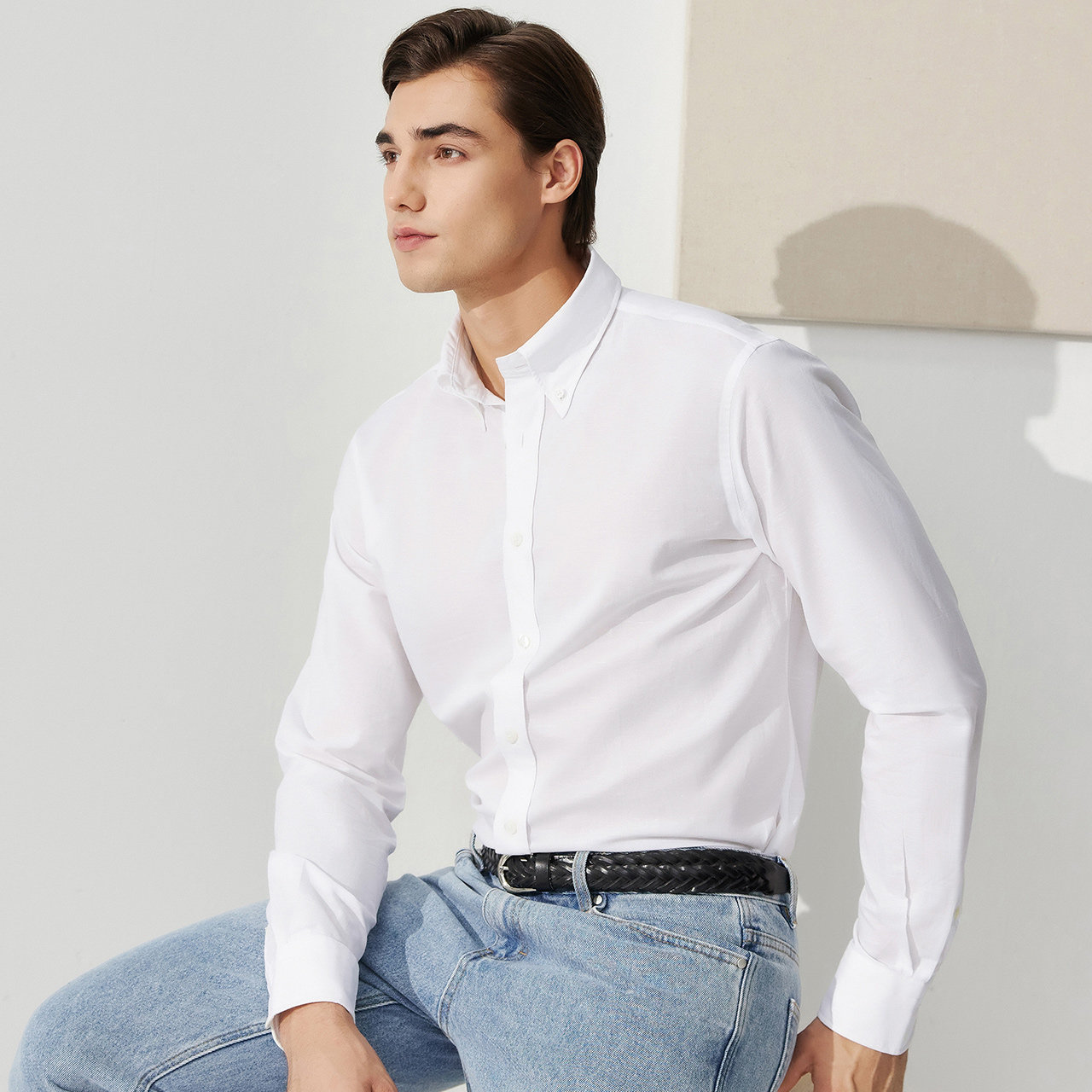 【云感衬衫】金利来秋冬新款莫代尔弹力抗皱男士商务长袖白色衬衣