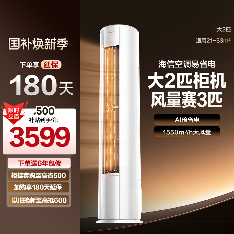 海信易省电2匹3匹立式空调柜机家用一级能效客厅以旧换新补贴