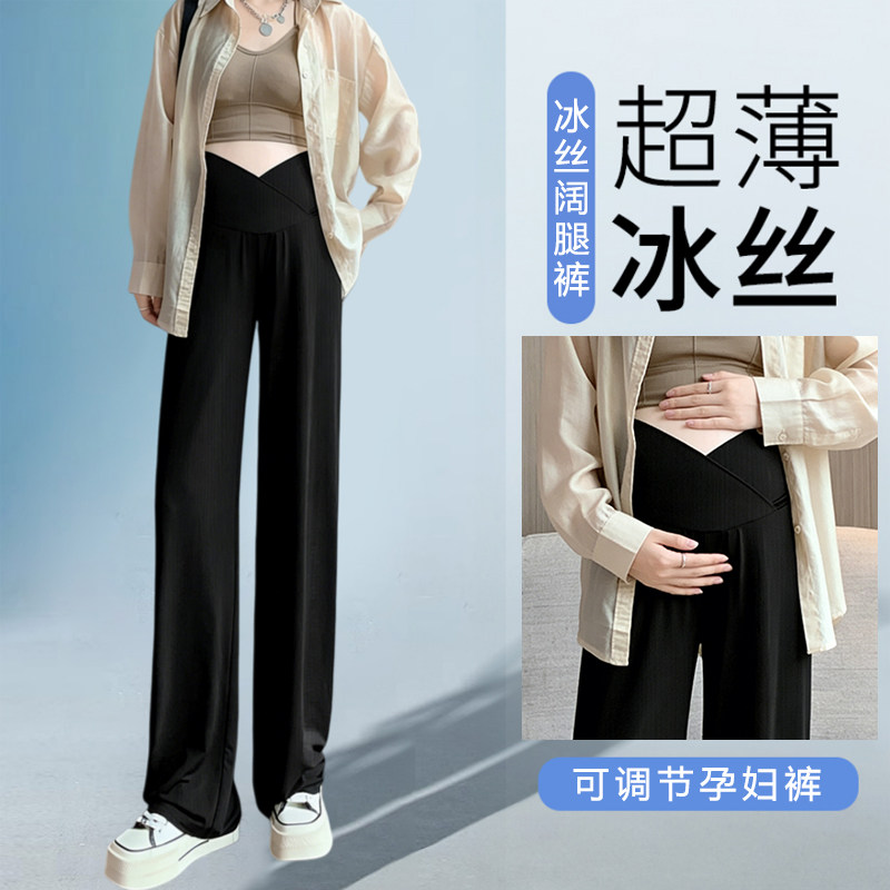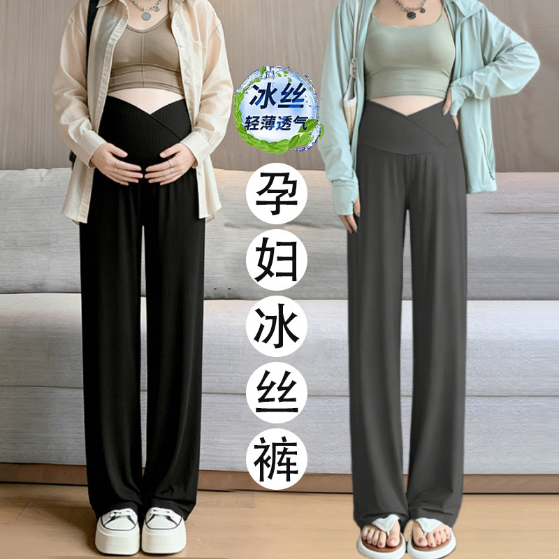 孕妇裤夏季薄款冰丝阔腿裤托腹休闲裤大码打底裤子外穿女夏装孕妈