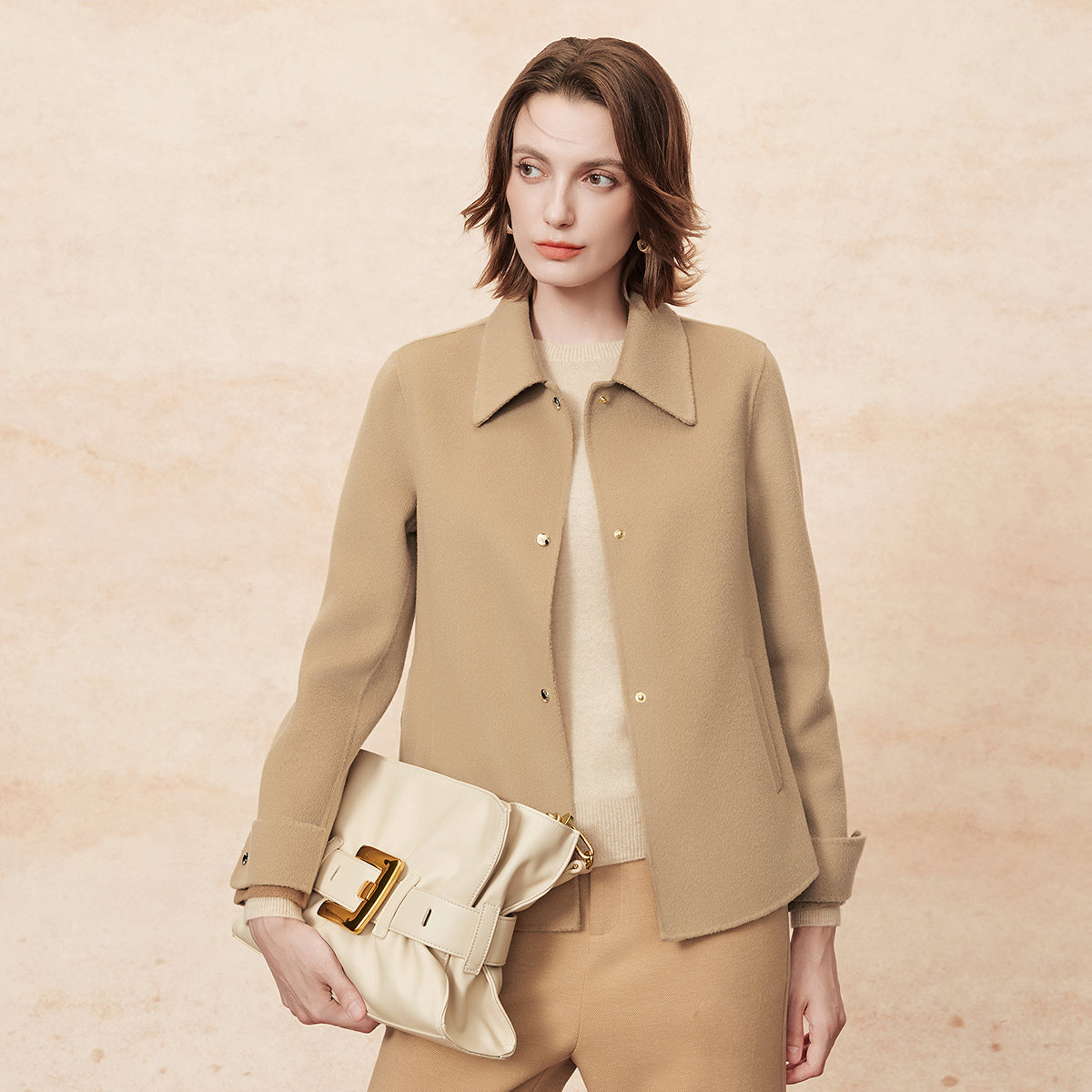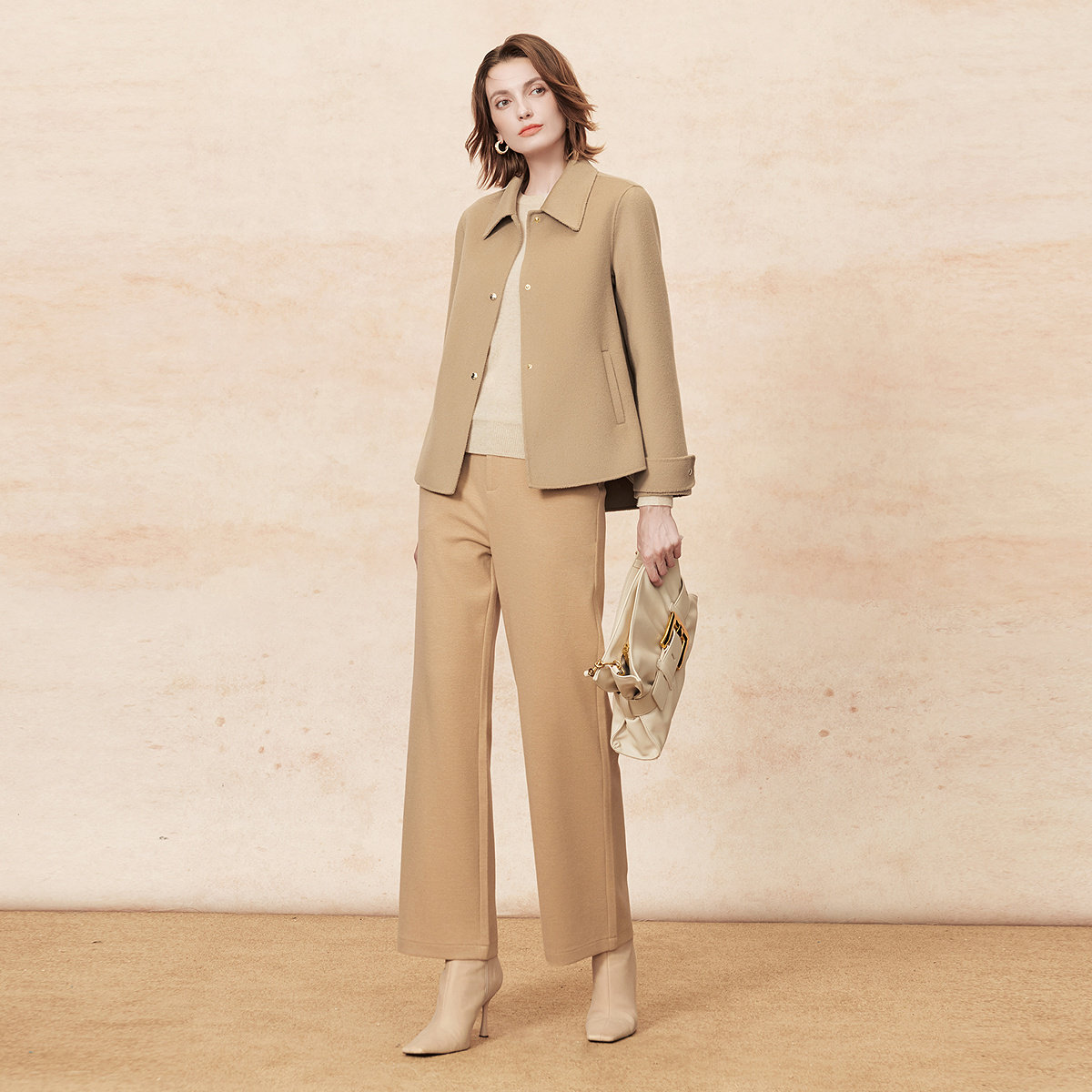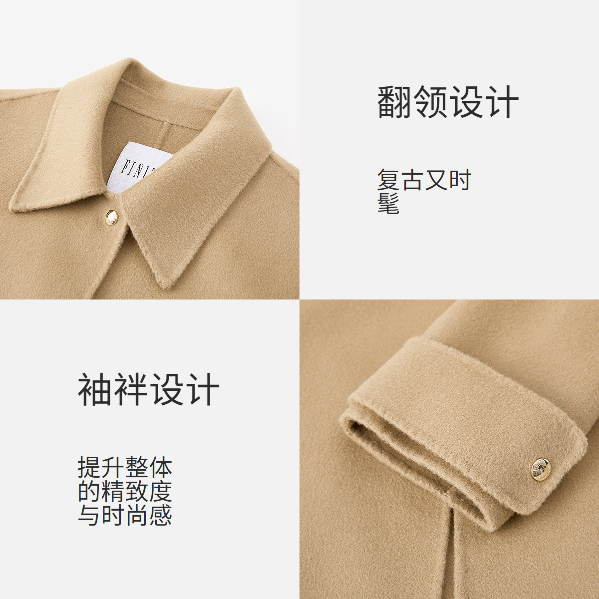 FINITY菲妮迪短外套2025年冬季新款翻领设计双面呢短款羊绒大衣女