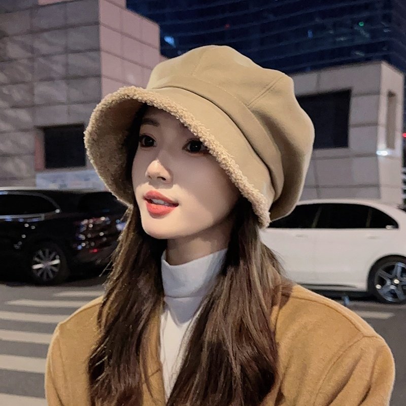 大头围大码帽子女秋冬天堆堆帽防寒加绒八角帽百搭羊羔毛渔夫帽女