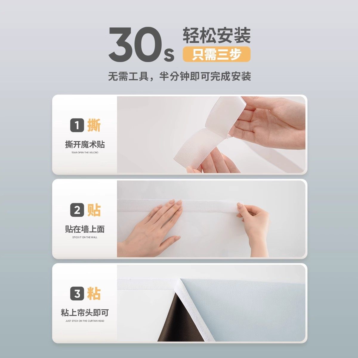 全遮光窗帘帘头成品自粘魔术贴免安装窗幔顶部防漏光神器卧室挡光