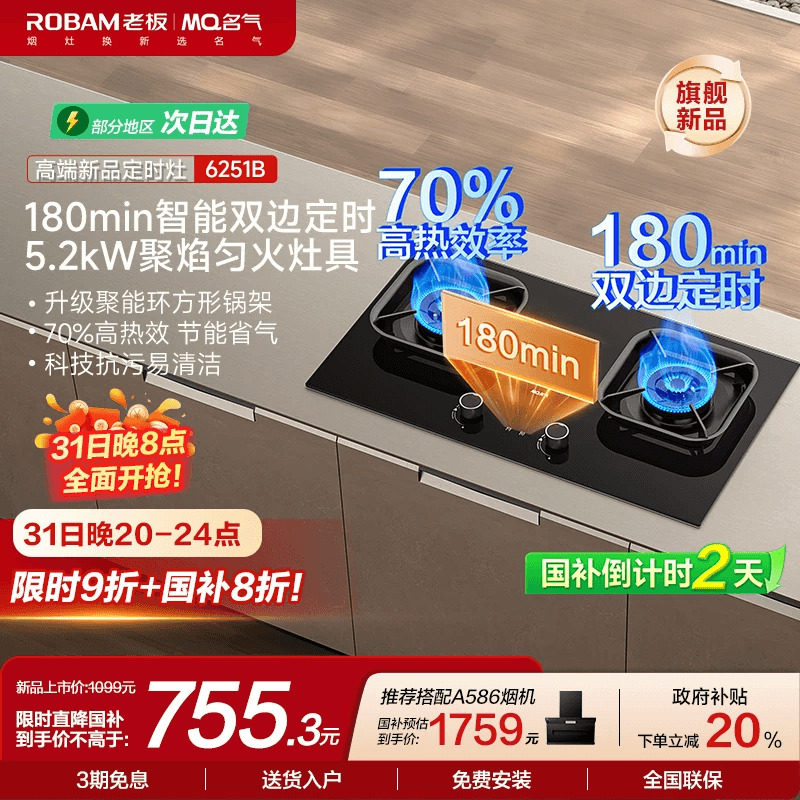 【新品】名气定时燃气灶双灶天然气煤气灶台猛火炉老板出品6251B