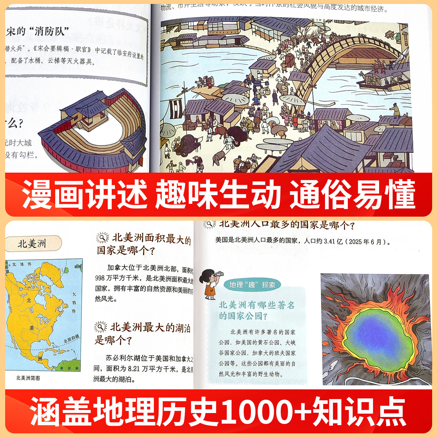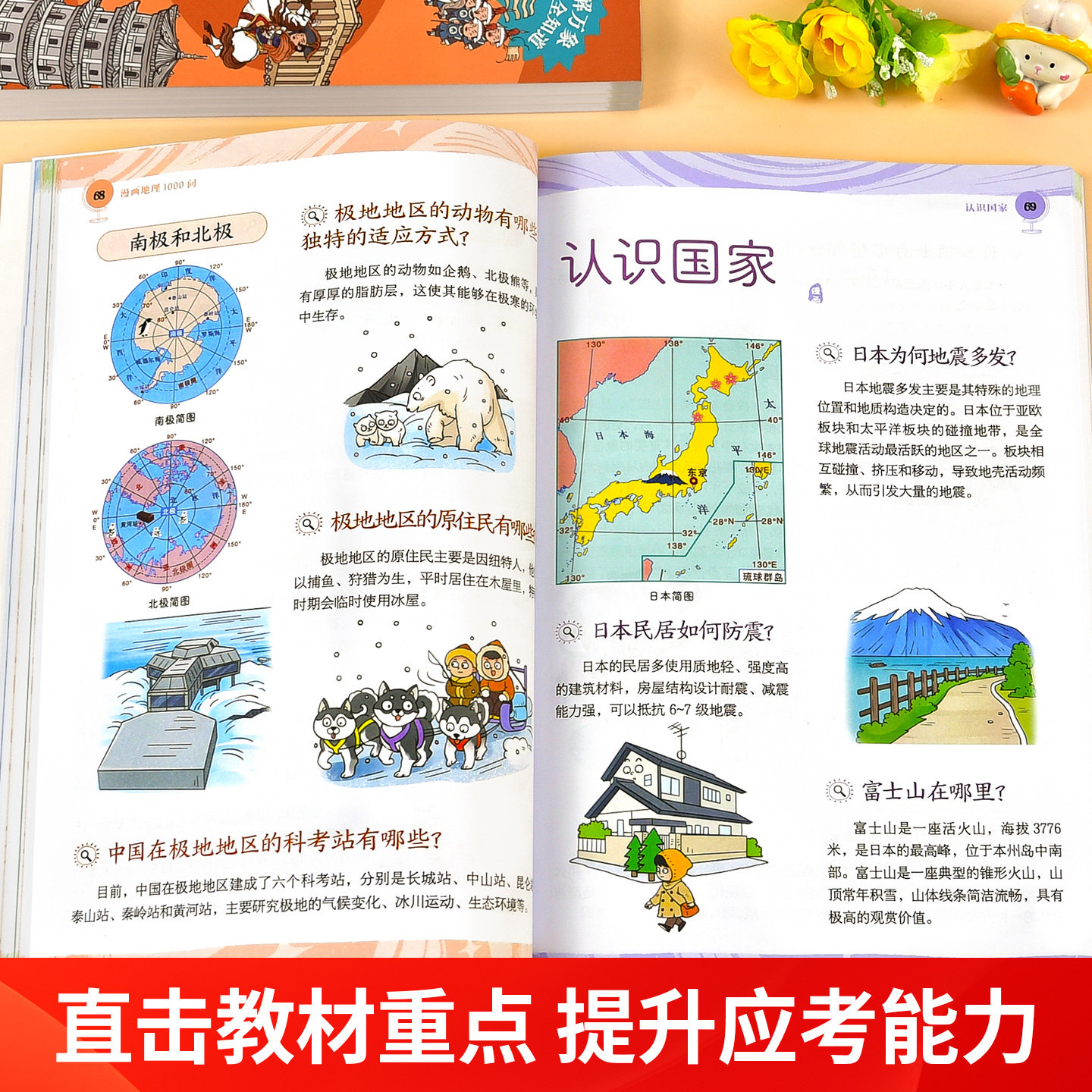 抖音同款漫画地理/历史1000问全套2册正版孩子必背的文学常识涵盖知识点初中小学课外阅读书籍文化