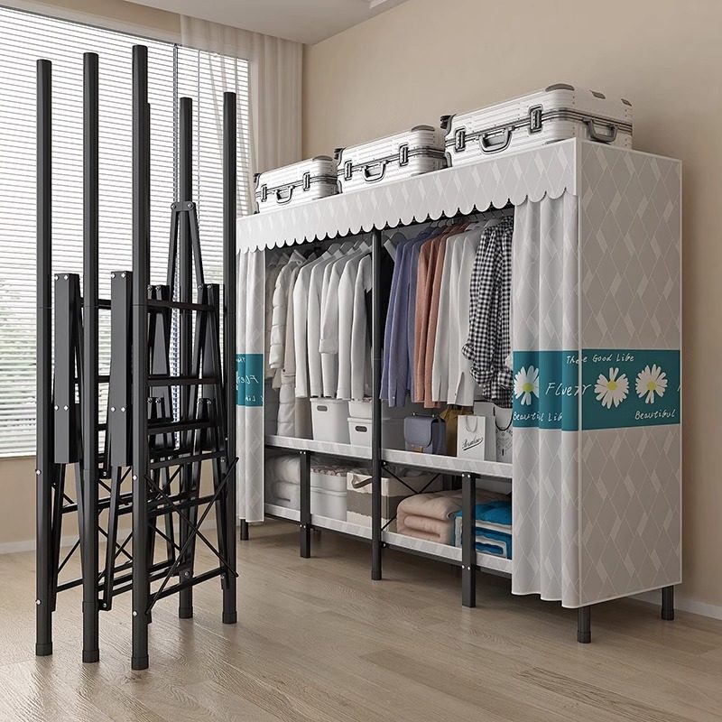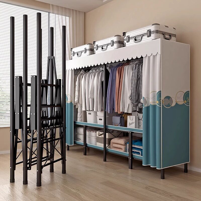 免安装折叠简易衣柜组装布衣柜家用卧室全钢架加粗加厚出租房耐用