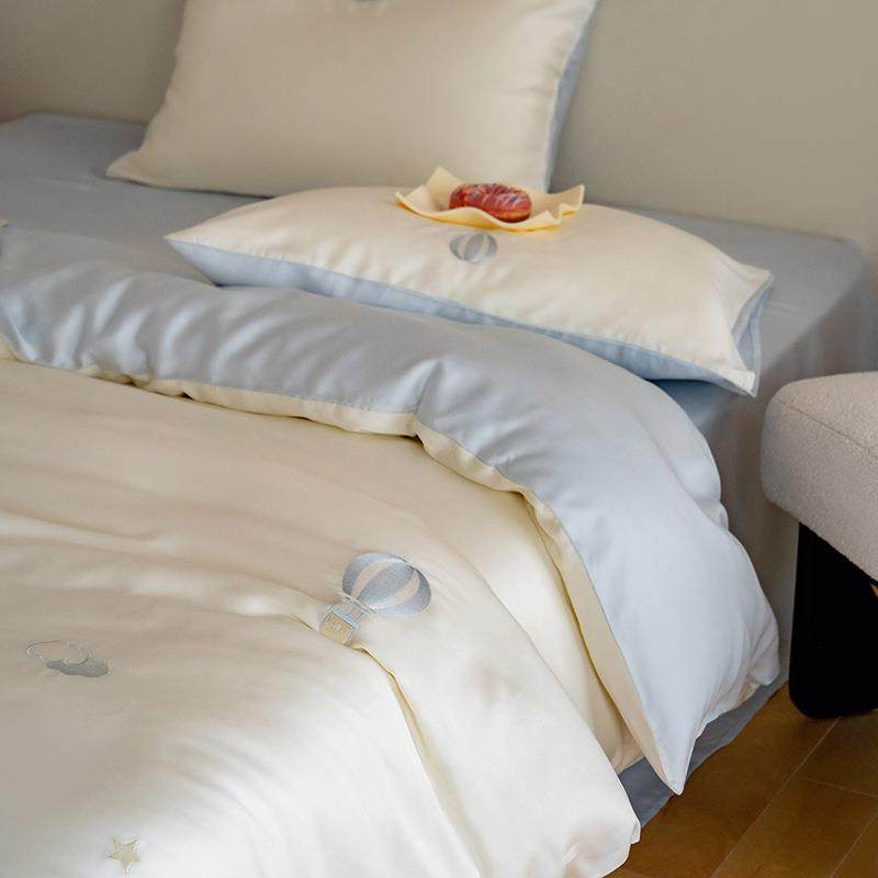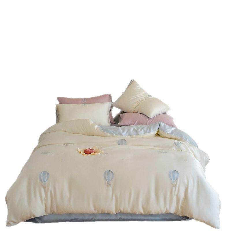 80支奥地利兰精天丝四件套夏季小清新三件套刺绣凉爽丝滑裸睡套件