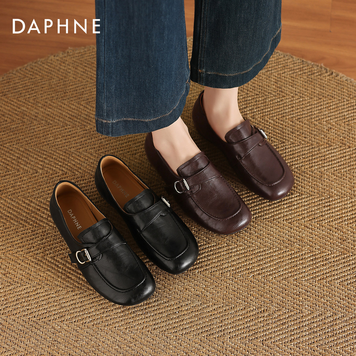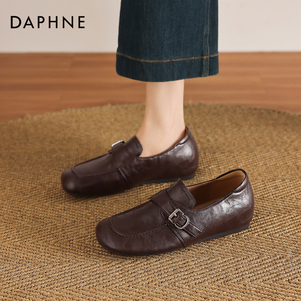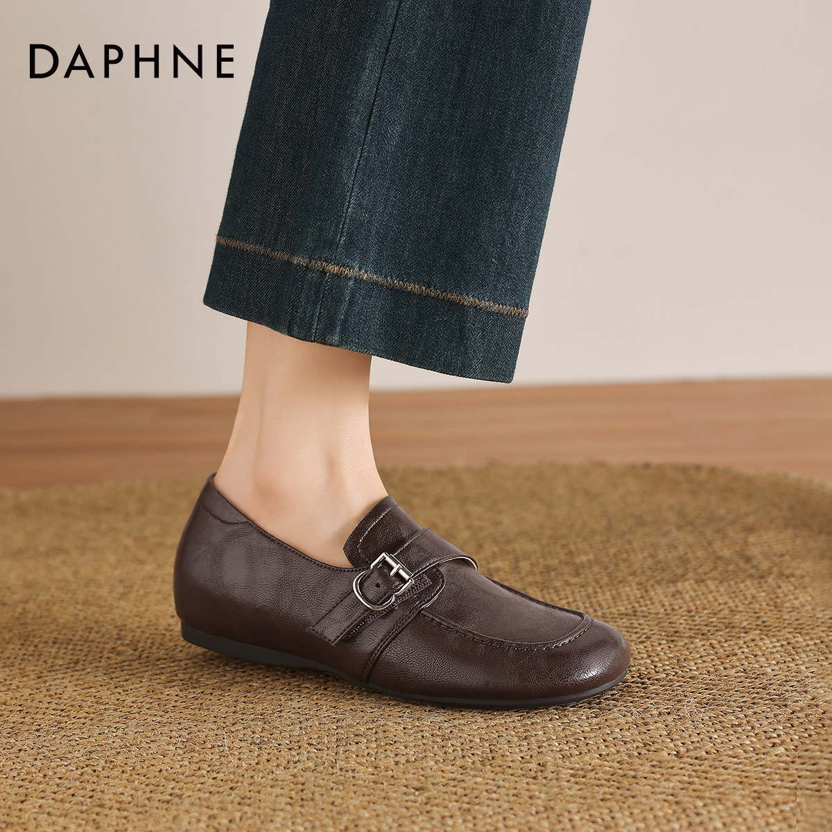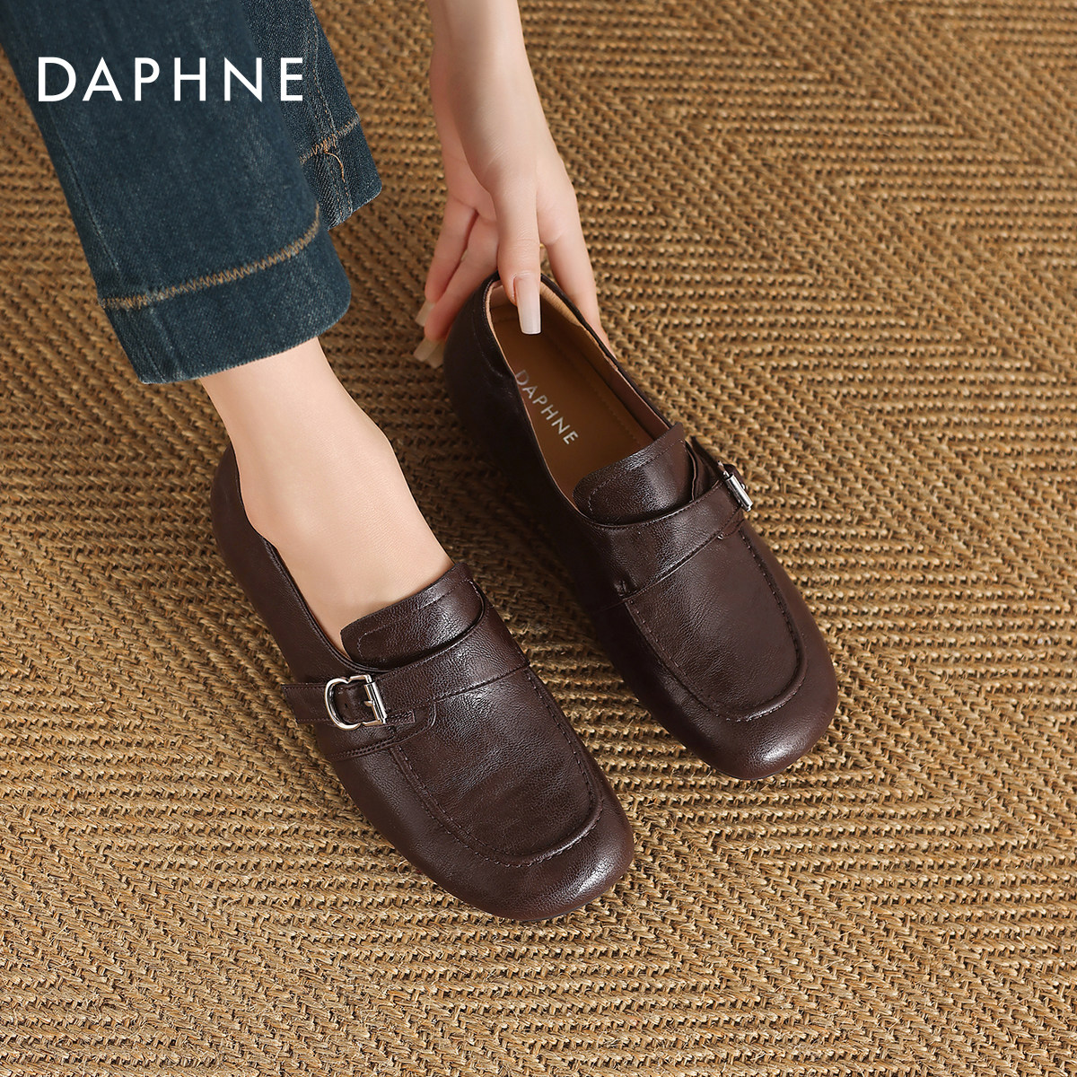 达芙妮棕色皮带扣乐福鞋女2026新款春英伦风一脚蹬通勤单鞋豆豆鞋