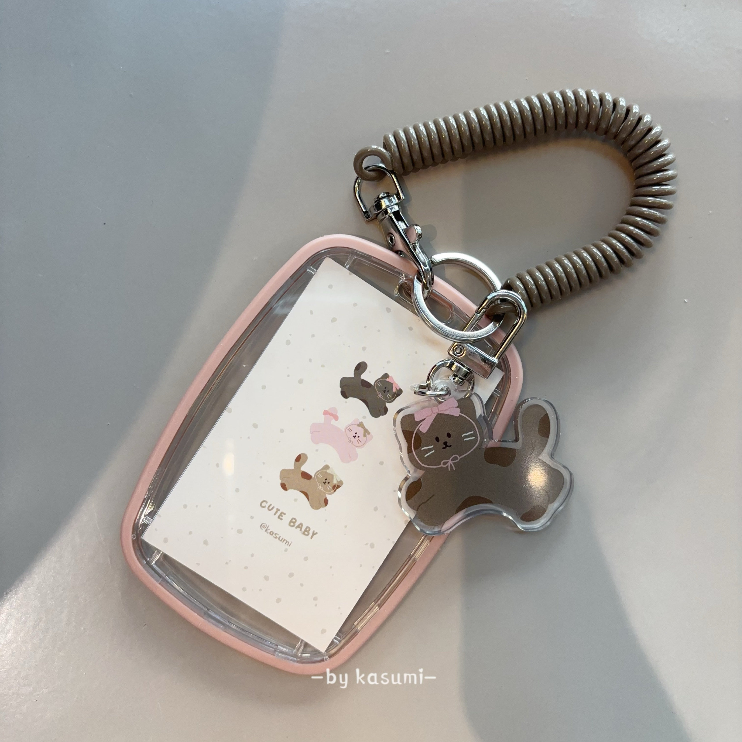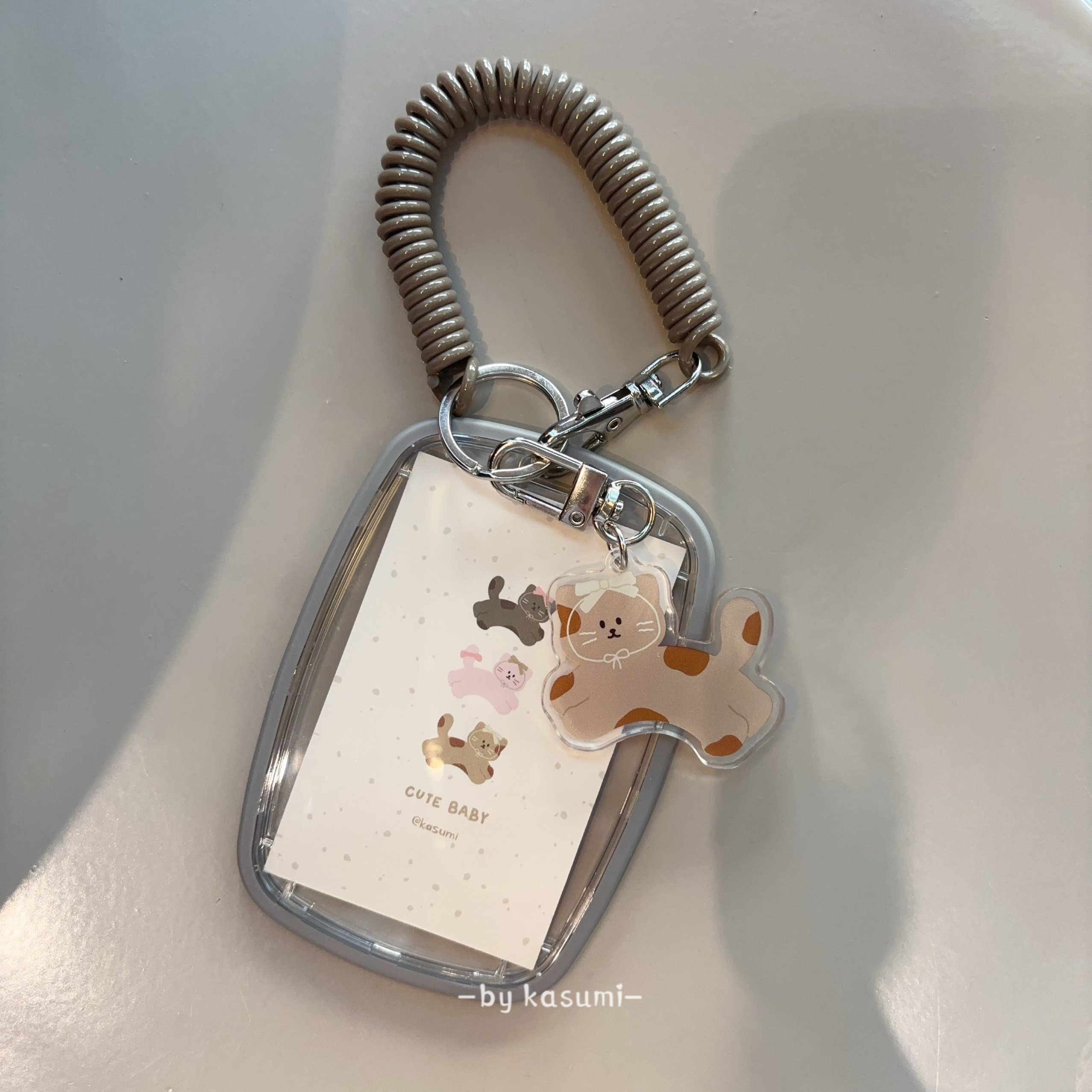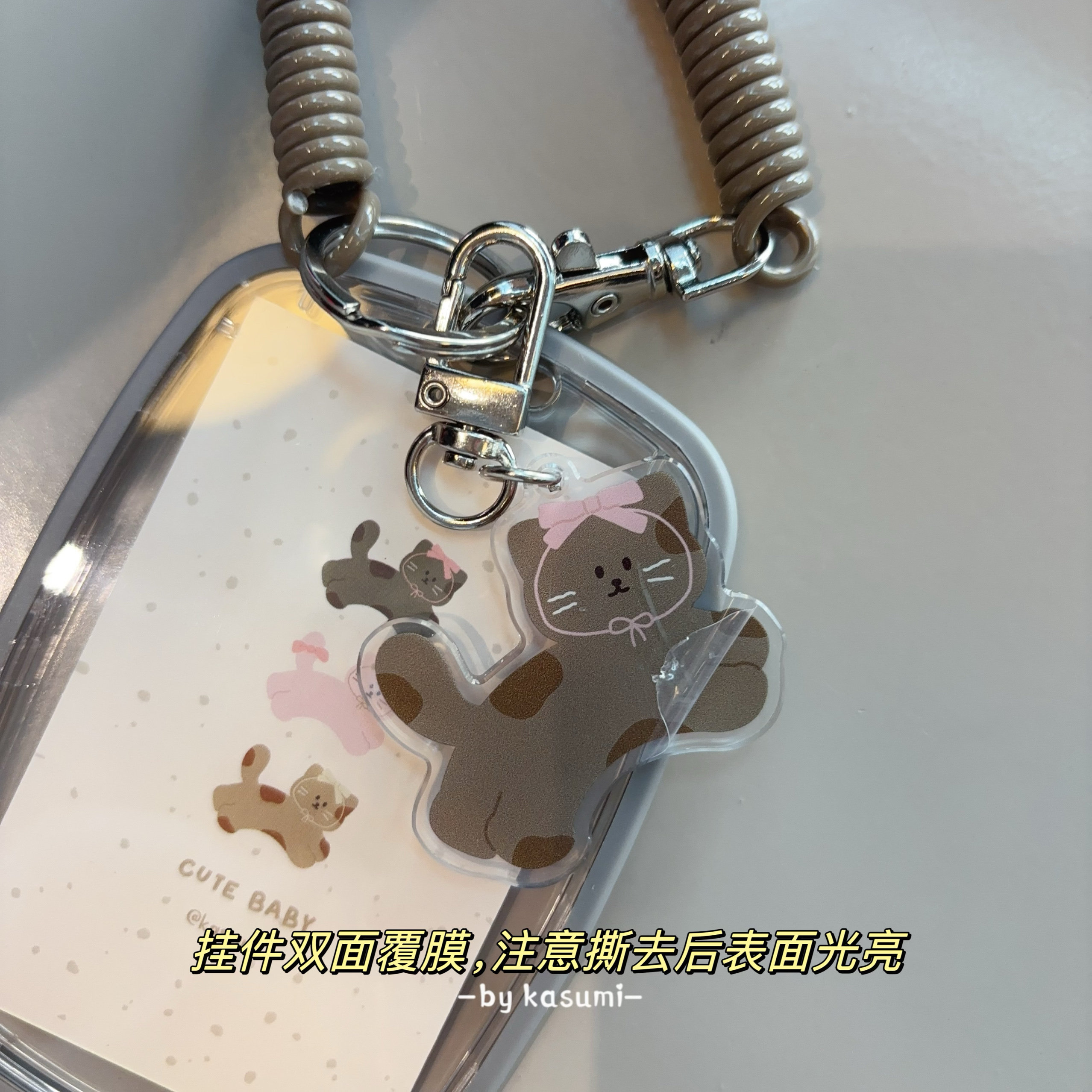 原创版权小猫宝宝钥匙扣一体公交饭卡校园证件工牌特斯拉透明卡套