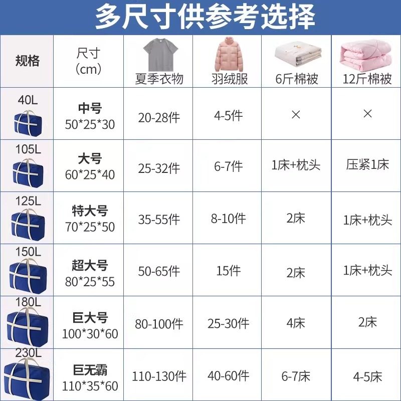 巨无霸大容量被子收纳袋棉被衣服防尘储物袋搬家打包袋手提行李包