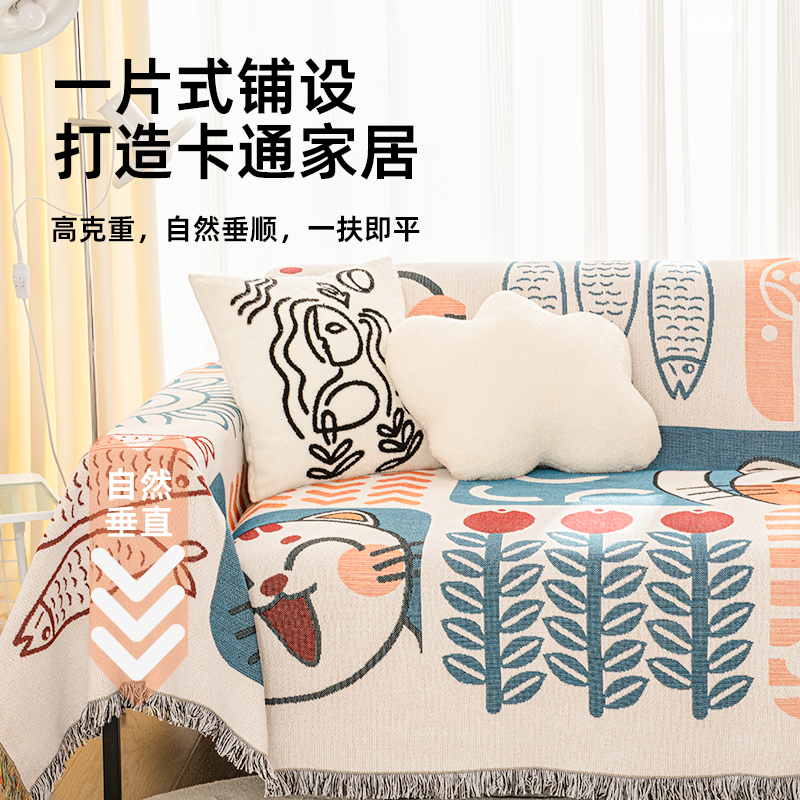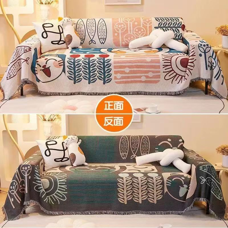 新款百搭沙发巾一片式加大加长一整张全盖桌布流苏线毯沙发坐垫