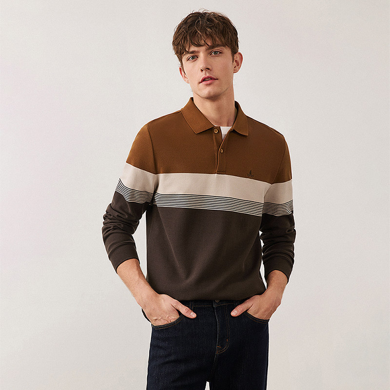 Navigare意大利小帆船秋季新款针织polo衫男长袖休闲条纹纯棉T恤