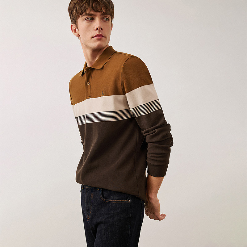 【透气珠地】暇步士男装2025秋季新款弹力休闲行政商务长袖POLO衫
