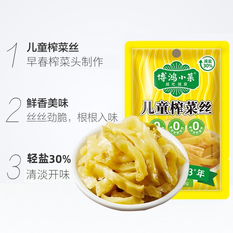 博鸿轻盐儿童榨菜咸菜丝70g无防腐剂不辣同款学生下饭脆口小包装