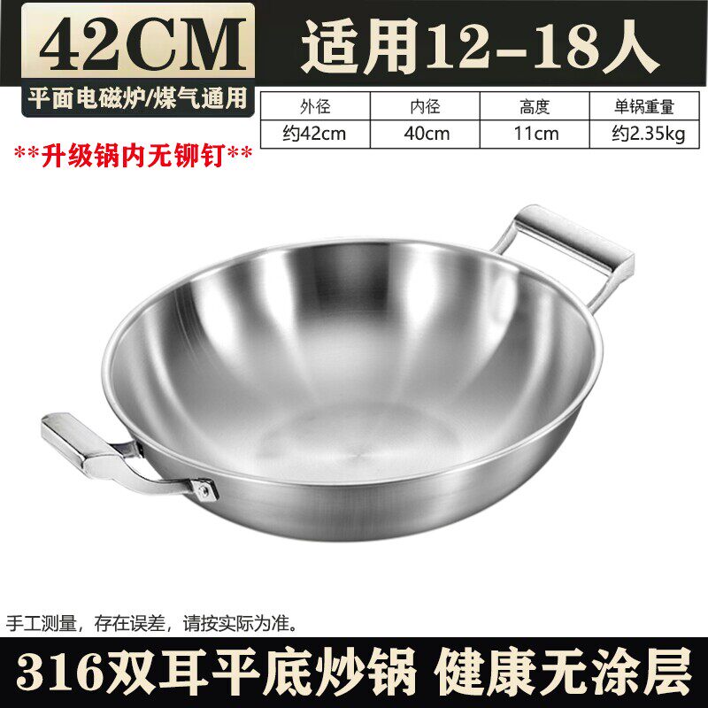苏泊尔食品级316不锈钢炒锅家用无涂层双耳不生锈炒菜锅蒸炖锅不F