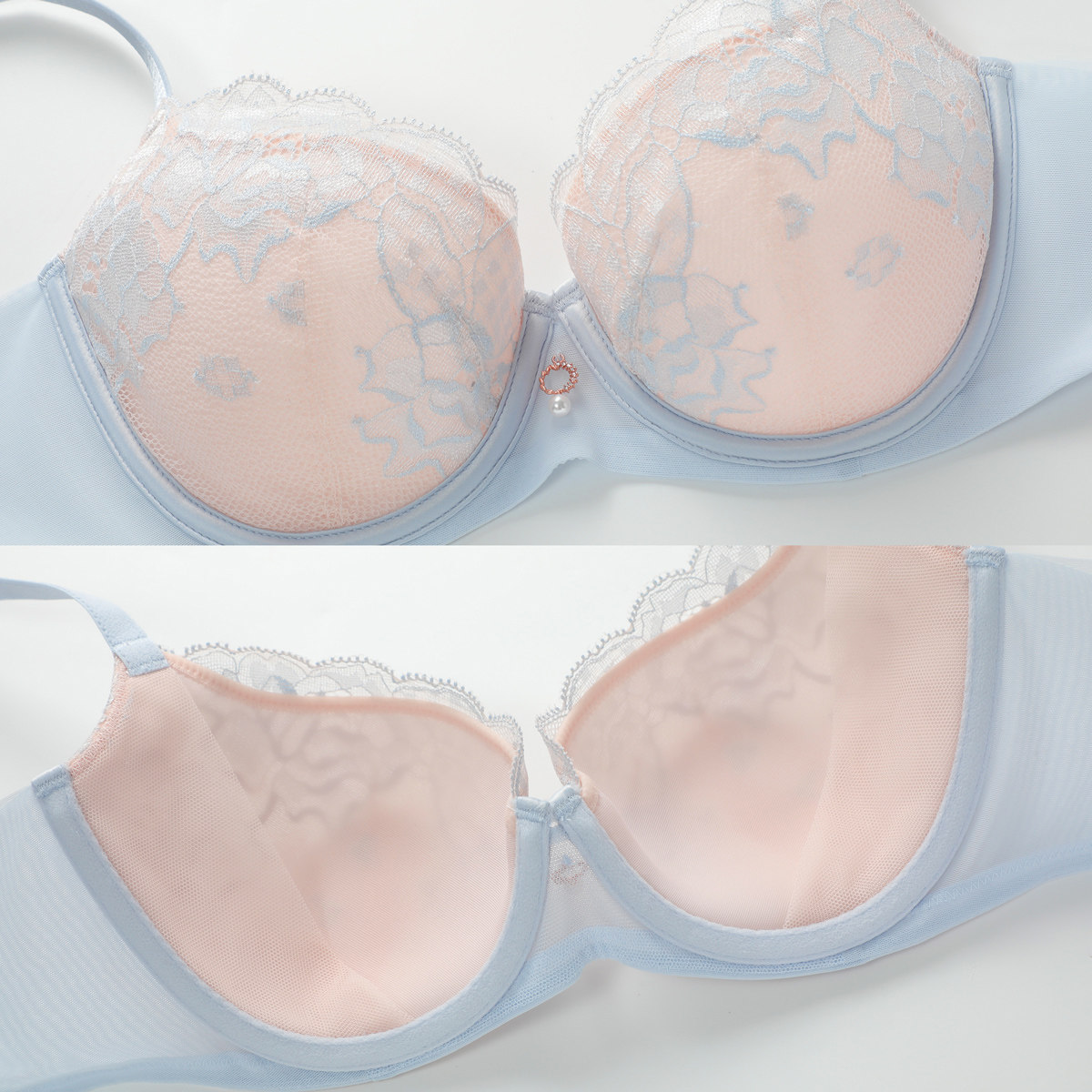 菇娘家兔耳杯内衣女大胸显小胸聚拢收副乳防下垂无痕隐形女款文胸