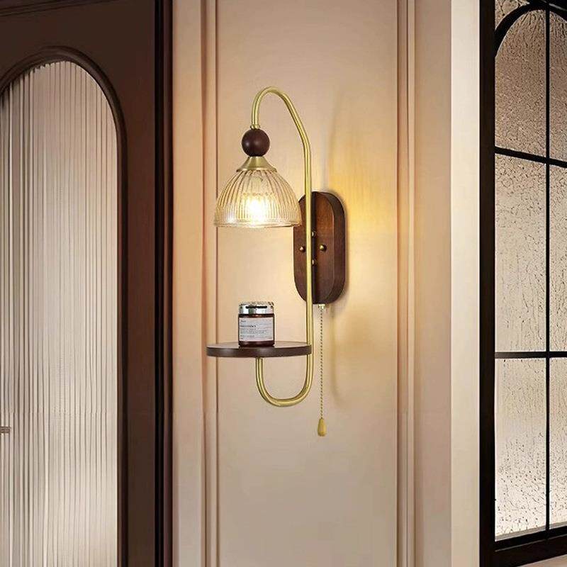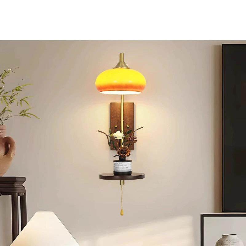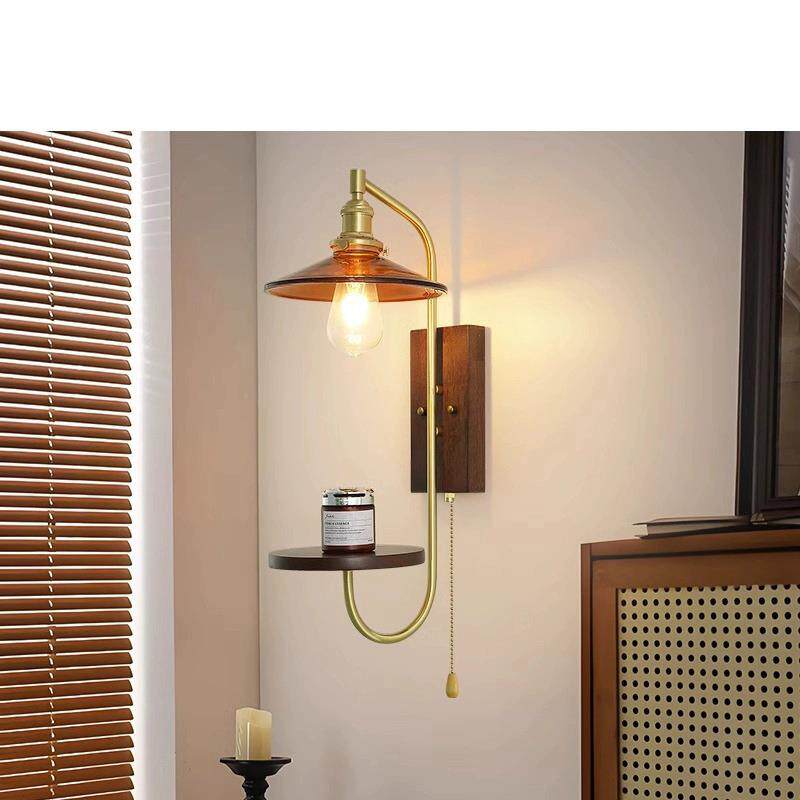 美式复古风侘寂风卧室床头壁灯民宿客厅高级氛围感实木过道走廊灯