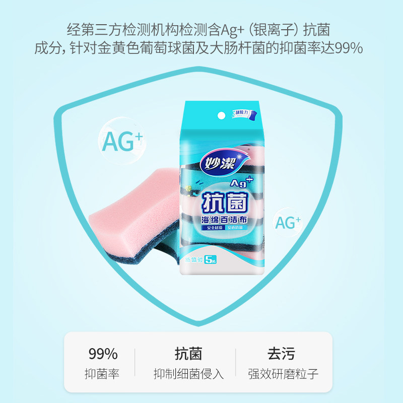 妙洁抗菌百洁布洗碗海绵厨房清洁抹布洗碗布含砂金刚砂刷锅海绵擦