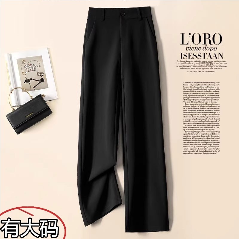 黑色西装裤女春秋新款大码高腰垂感显瘦职业小个子窄版直筒阔腿裤