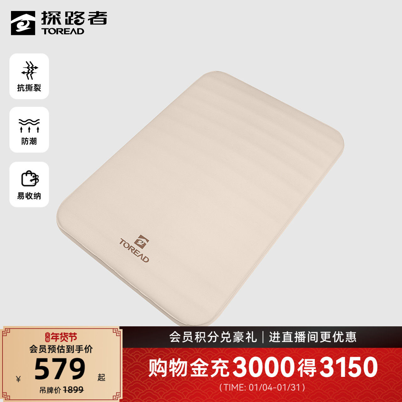 探路者户外露营防潮垫全自动易收纳便携双人充气高弹力耐磨床垫