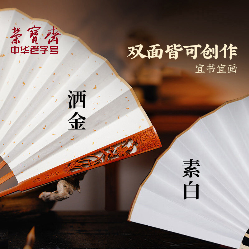 荣宝斋古风折扇中国风宣纸扇子空白扇子夏季书法题字绘画扇洒金扇面